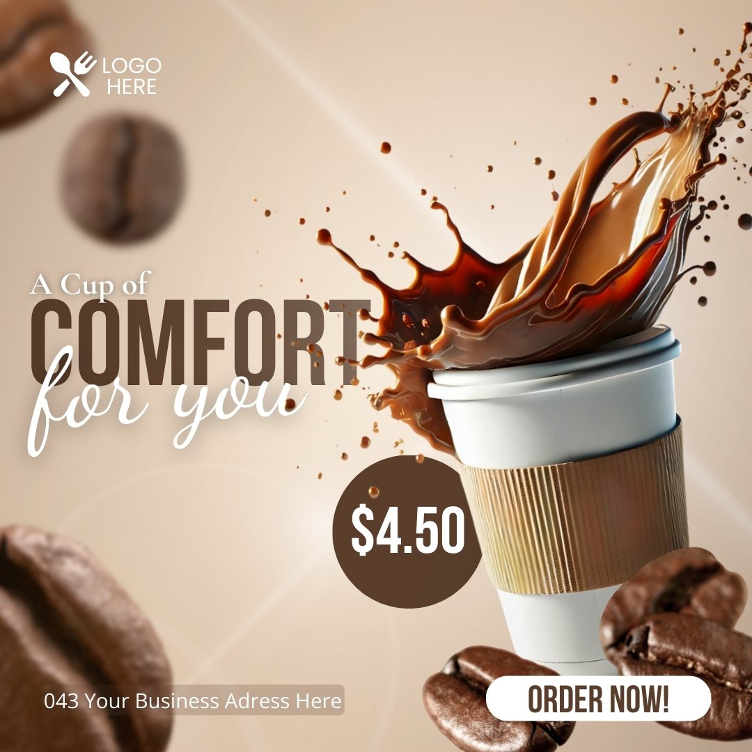 Editable Soft Cream Coffee Advertising Template | Premium Canva Design for Cafes & Restaurants