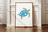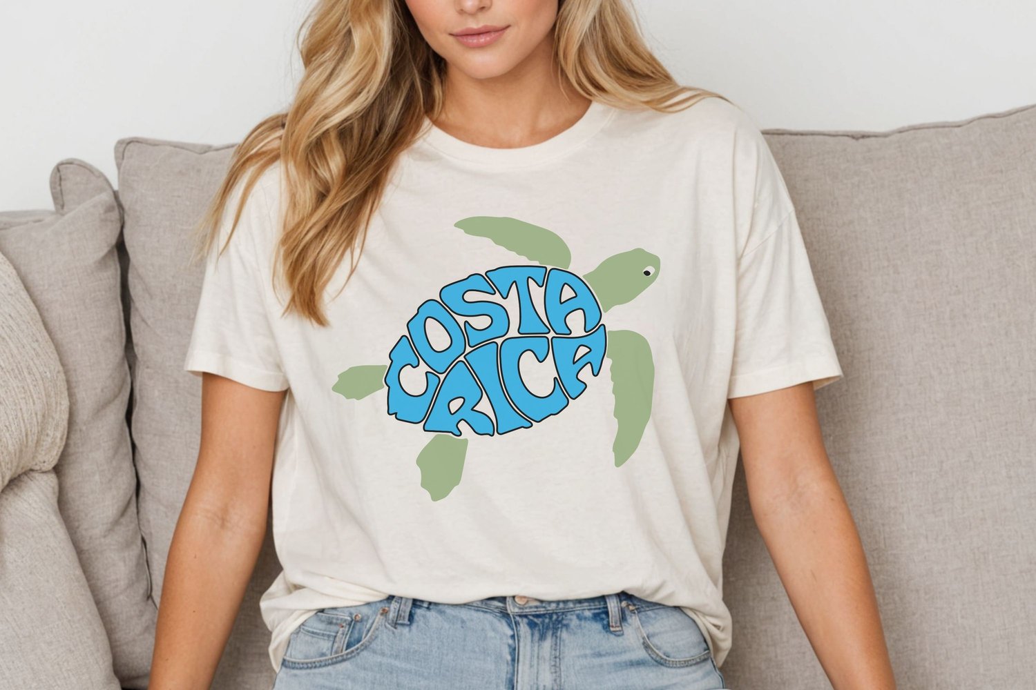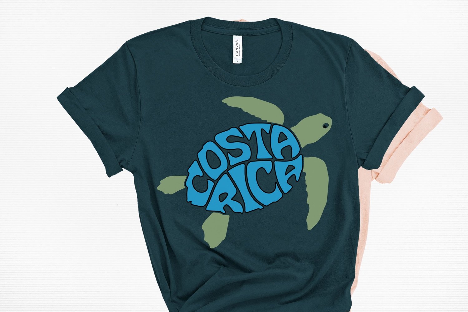 This design features the words Costa Rica artistically arranged within the shape of a sea turtle.