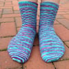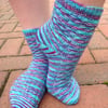 These socks are knit using the magic loop method (although the purchaser could easily adapt it for two circulars or double points).