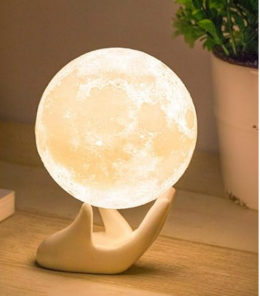 - The moon decor lamp is a charming gift for birthdays, baby showers, Valentine's Day, Christmas, New Year, Halloween, Home, Bedroom, Kids, Women, and Couples. It is made of PLA materials and comes in a simple and beautiful box packaging