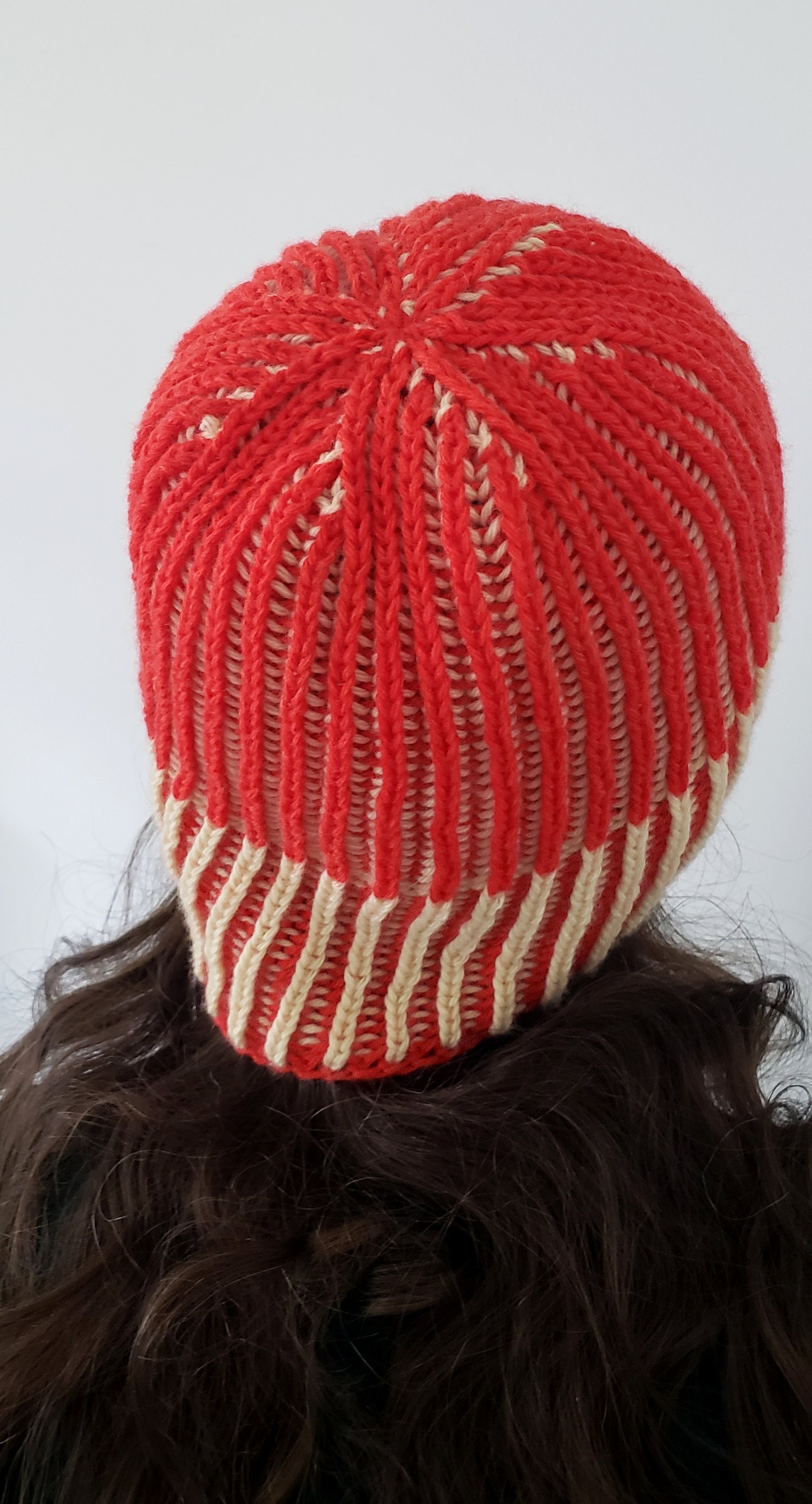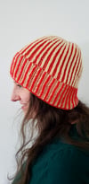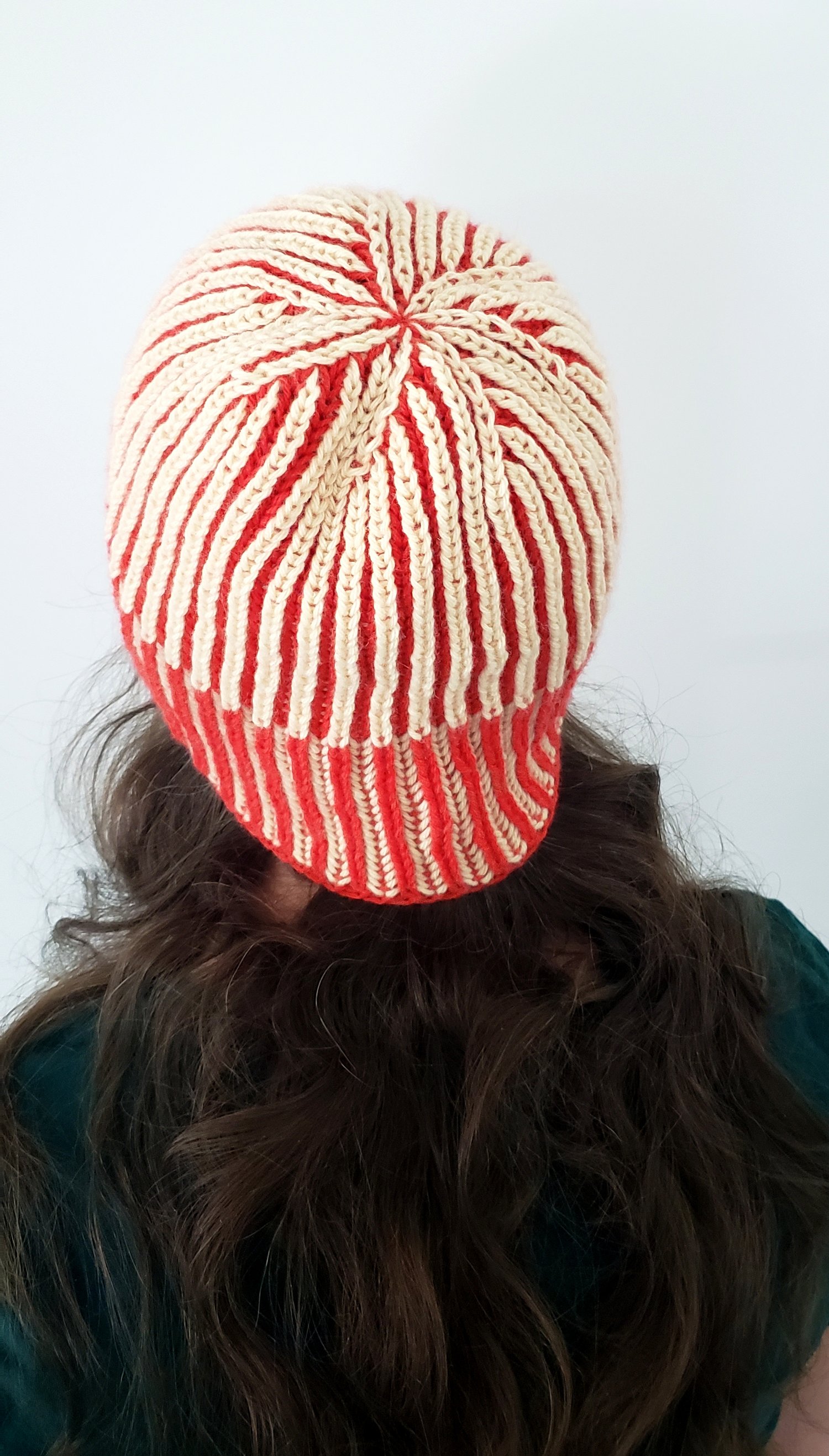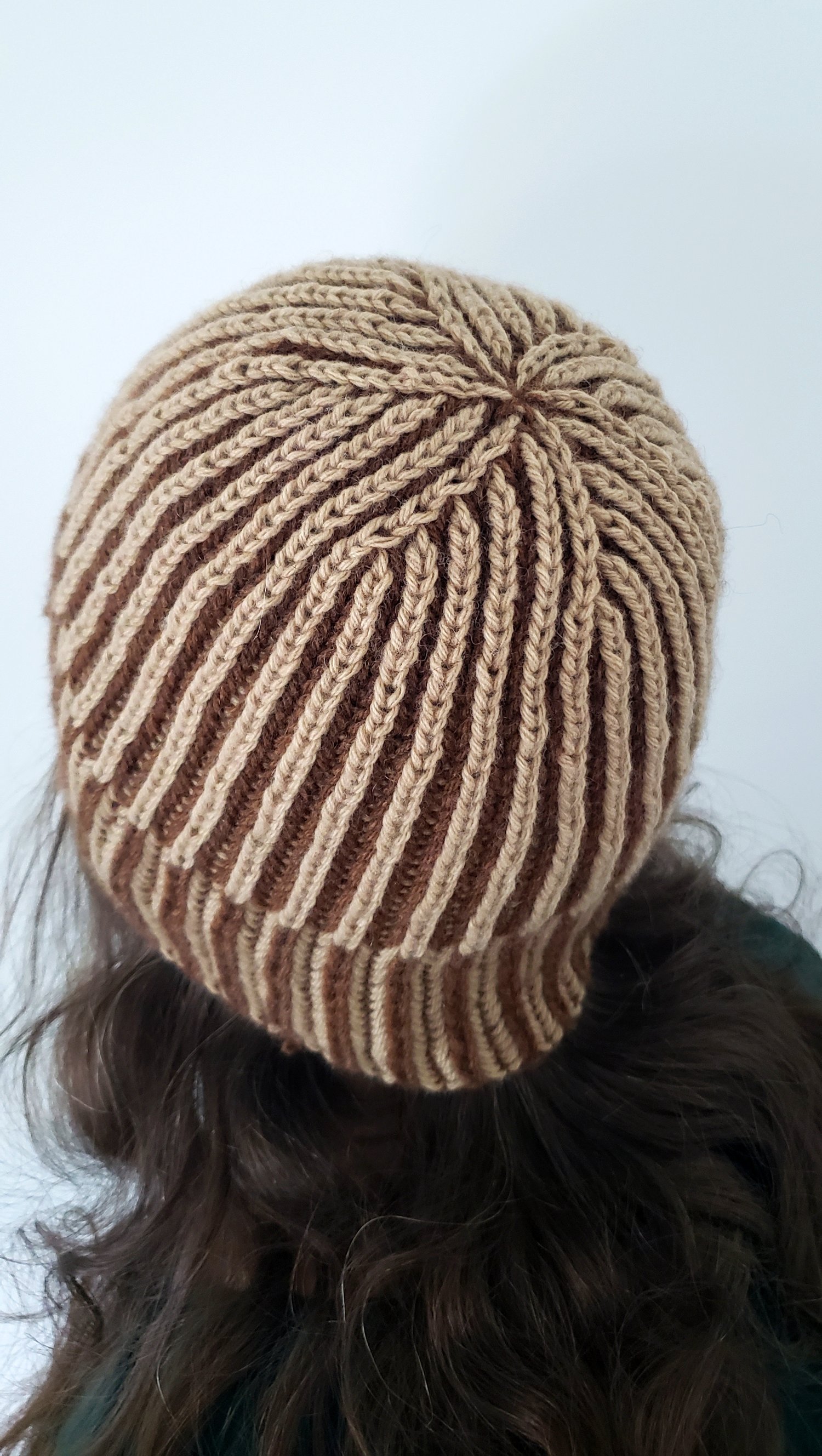 When I designed this hat, my intention was to make a wardrobe staple that would allow beginner brioche knitters the chance to expand their skills. Umbra is knit in the round from the bottom up, using only basic brioche stitches until the crown decreases (and then only one type of decrease). Umbra can be knit exactly as to pattern, but it’s also infinitely customizable. You can have as many (or as few!) stripes as you like with just two colors, or go stash-busting and add in as many color changes as you want! Plus, this hat is completely reversible! The yarn I chose for my samples, The Lamb & Kid Tod, is an amazing blend of yak and cashmere, soft and lovely, and comes in an abundance of beautiful hues for endless color pairing fun!
