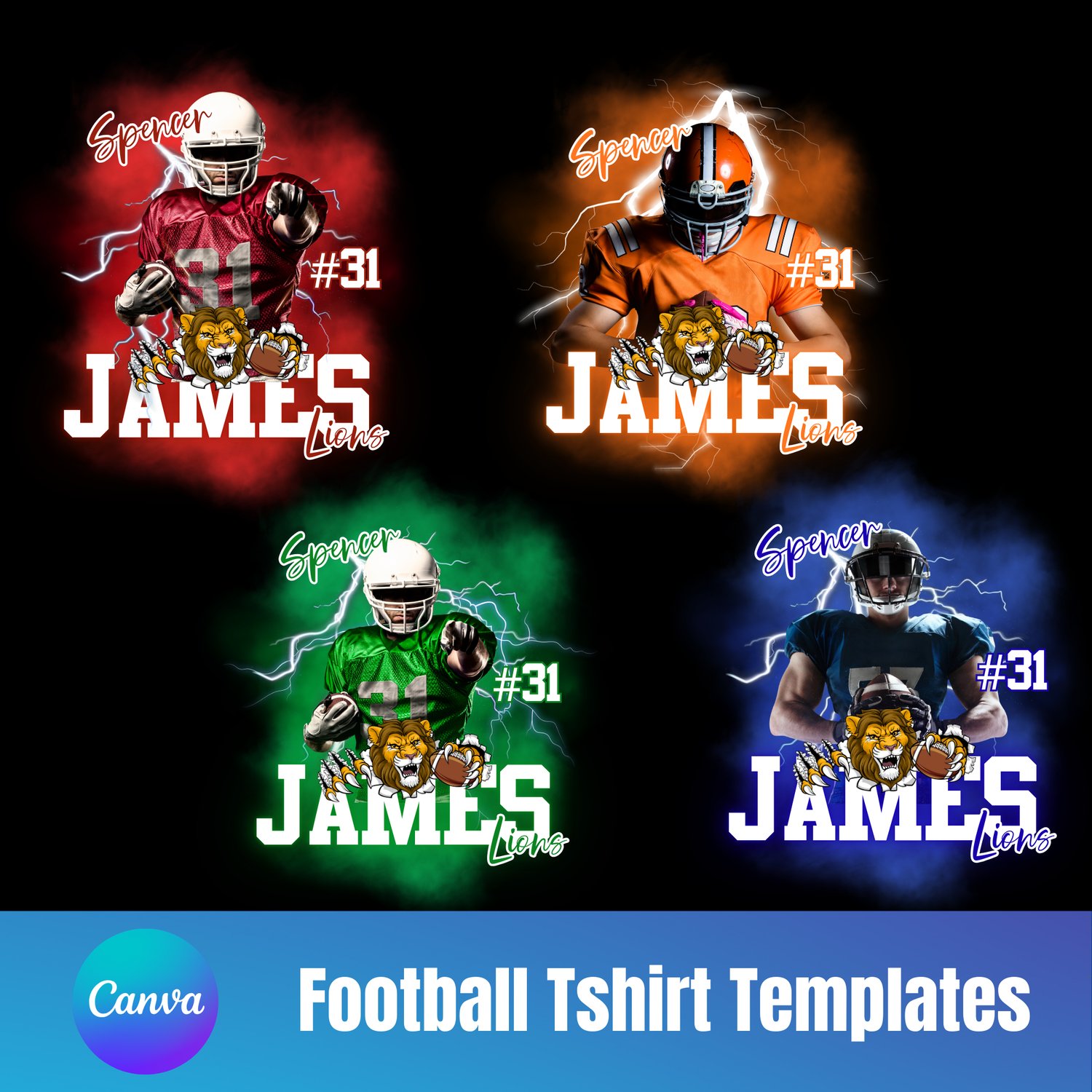 Bring the energy of the game to life with these bold and customizable Football T-Shirt Templates today! 🦁🏆
