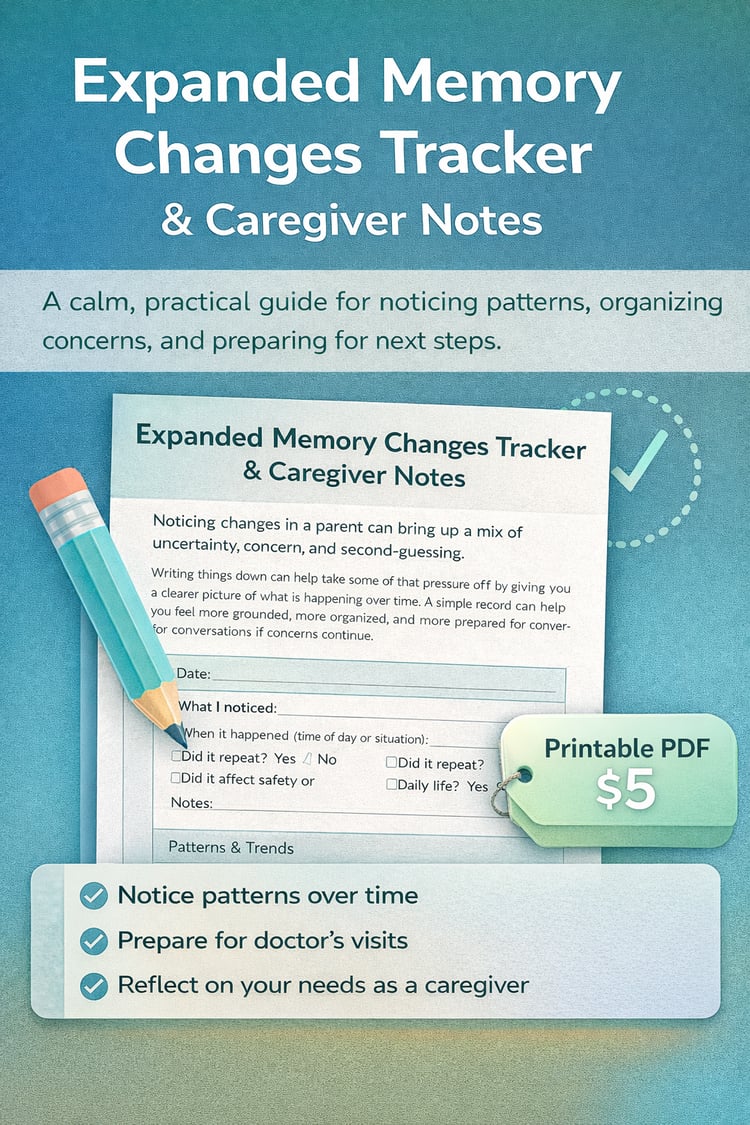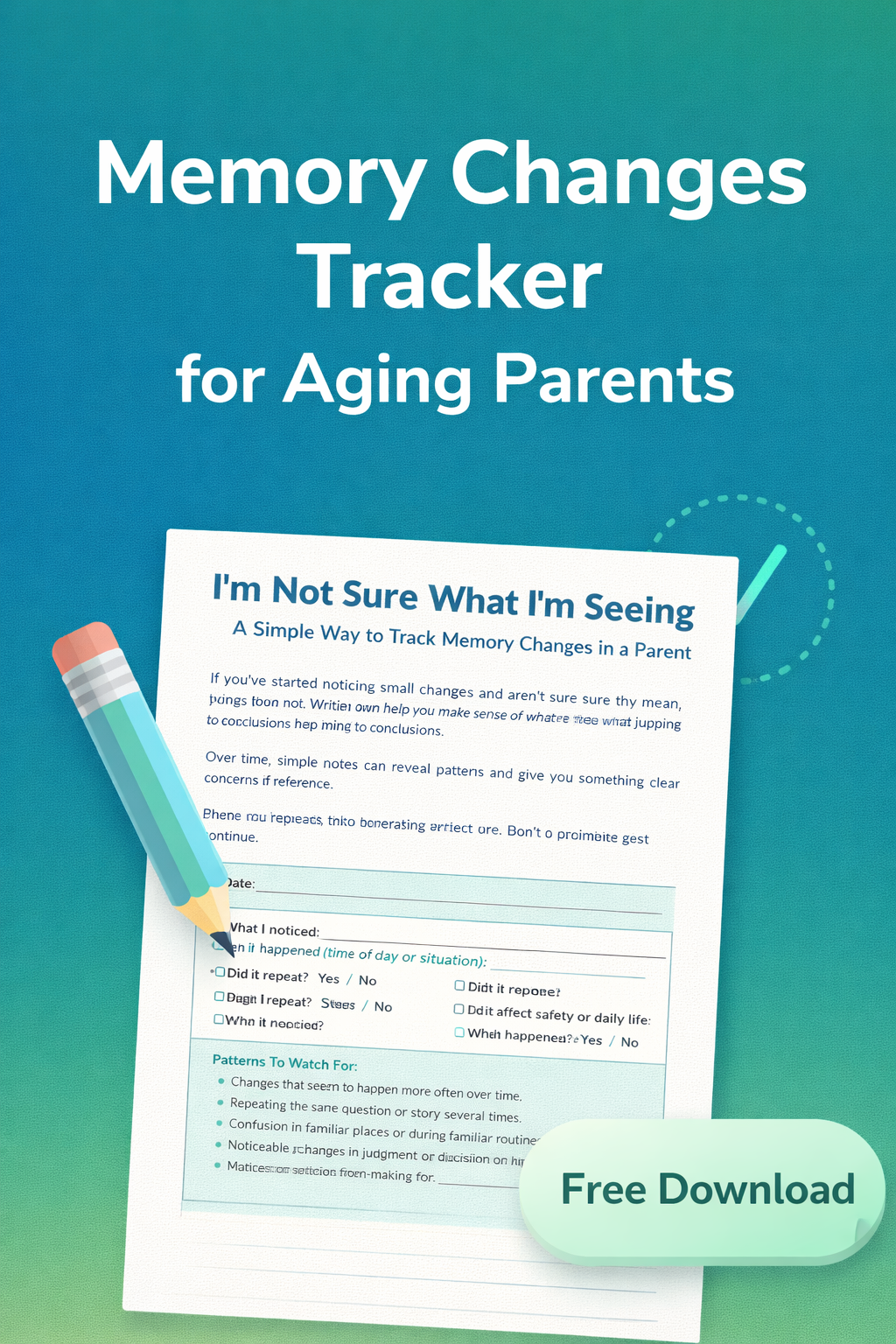 Designed for adult children supporting aging parents, this guide gives you a calm, practical way to track memory changes without overthinking or jumping to conclusions.