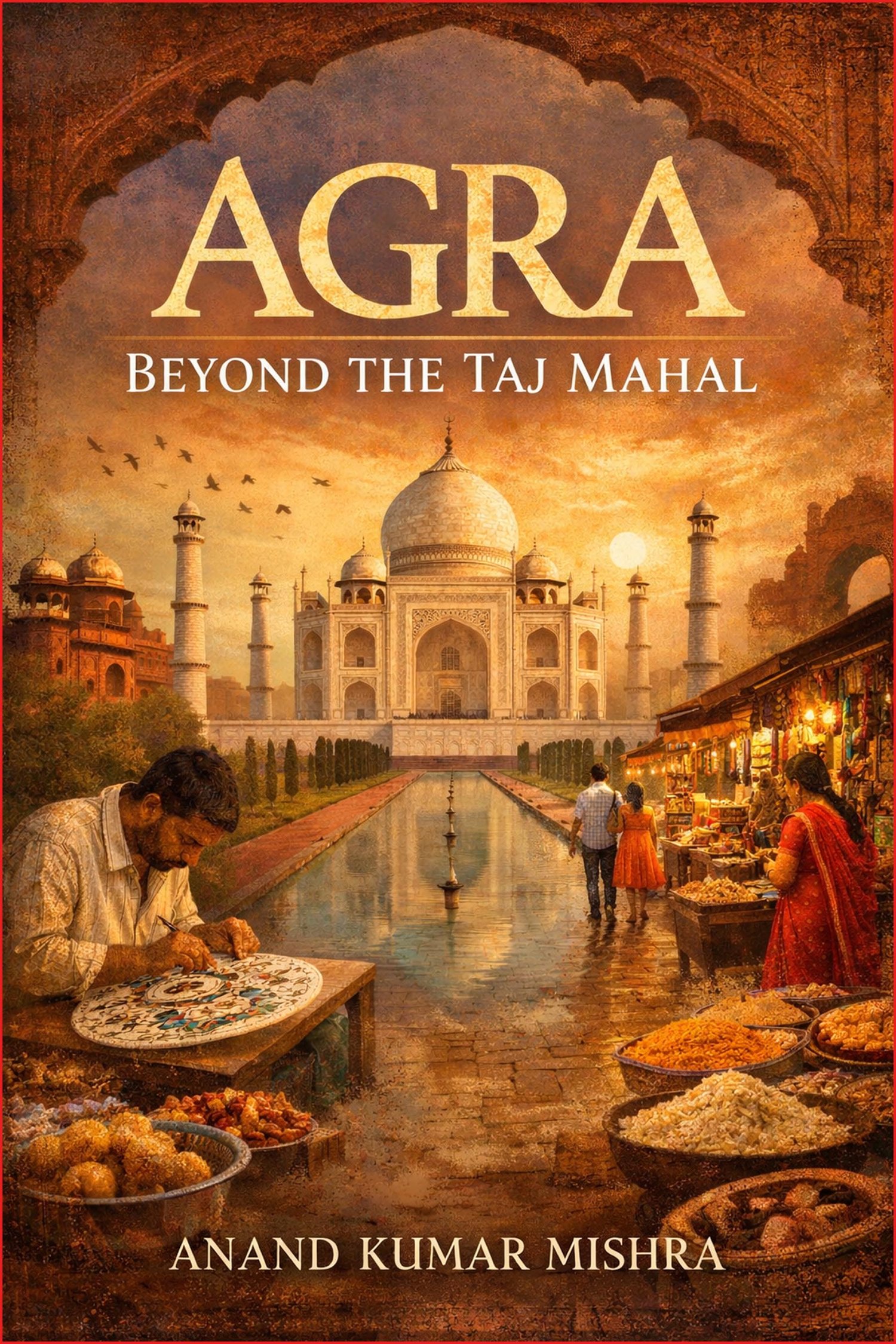 This book was written to explore Agra in its entirety: its rise as a Mughal capital, its architectural brilliance beyond the Taj, its living culture, crafts, food, and the everyday life that continues around ancient walls.