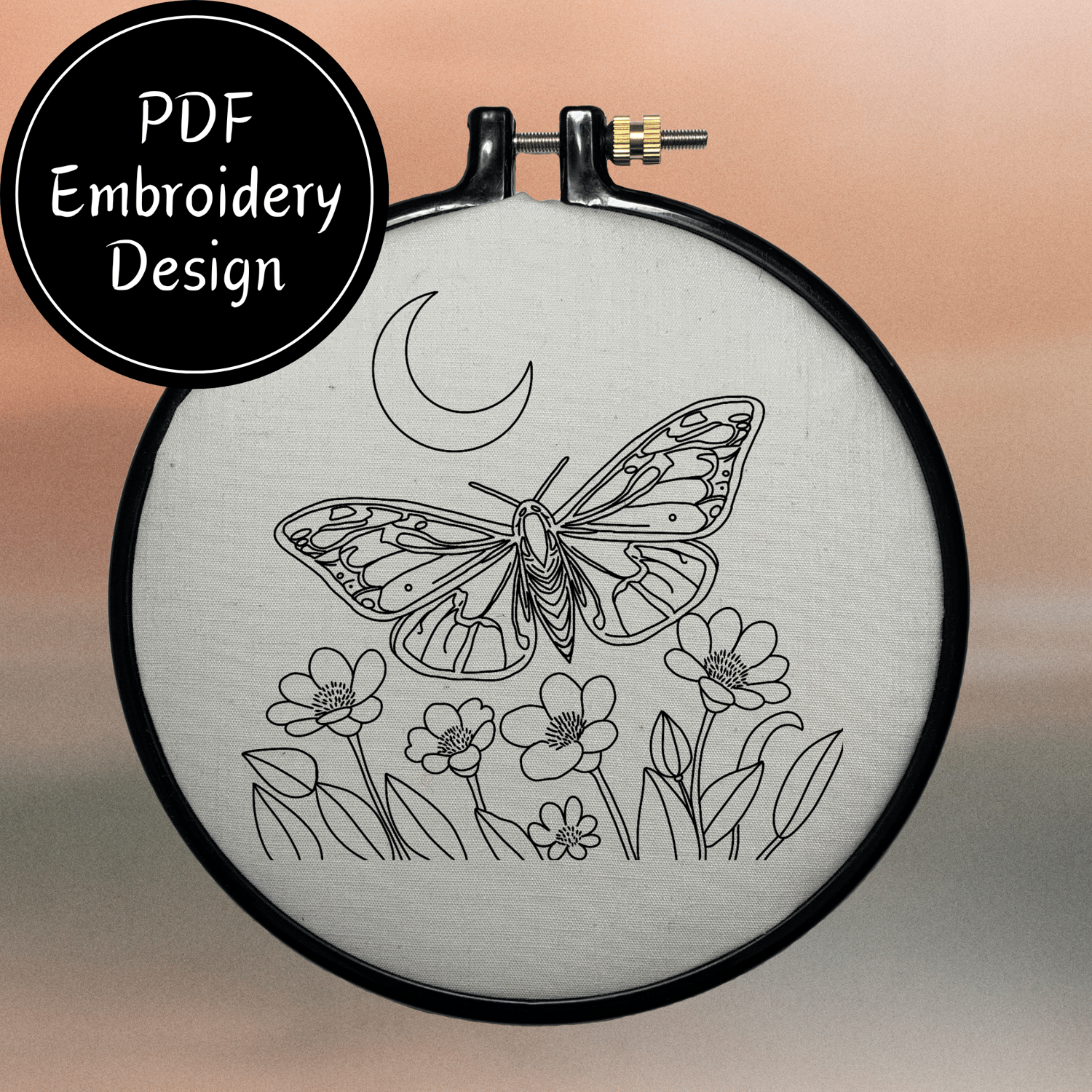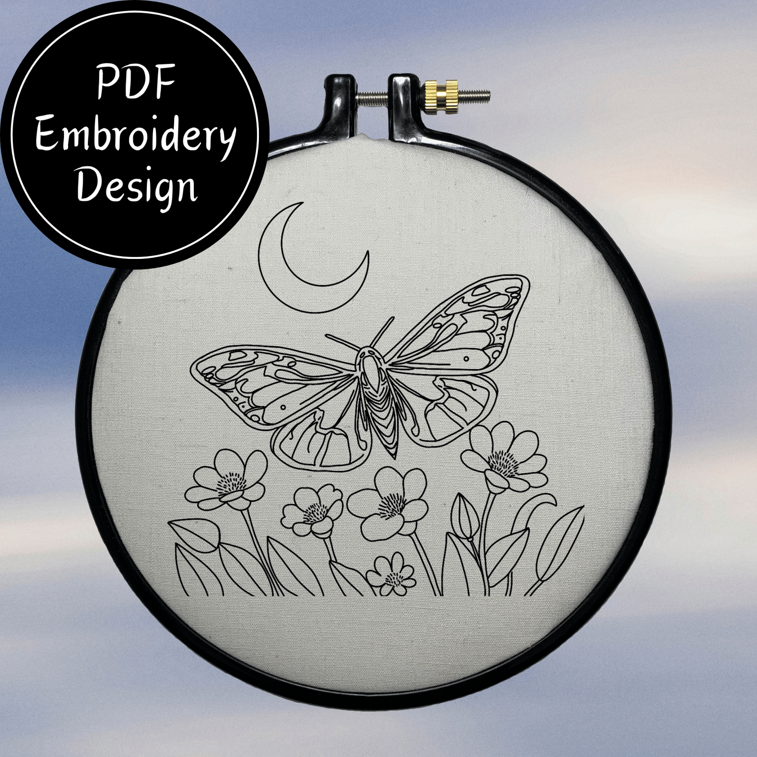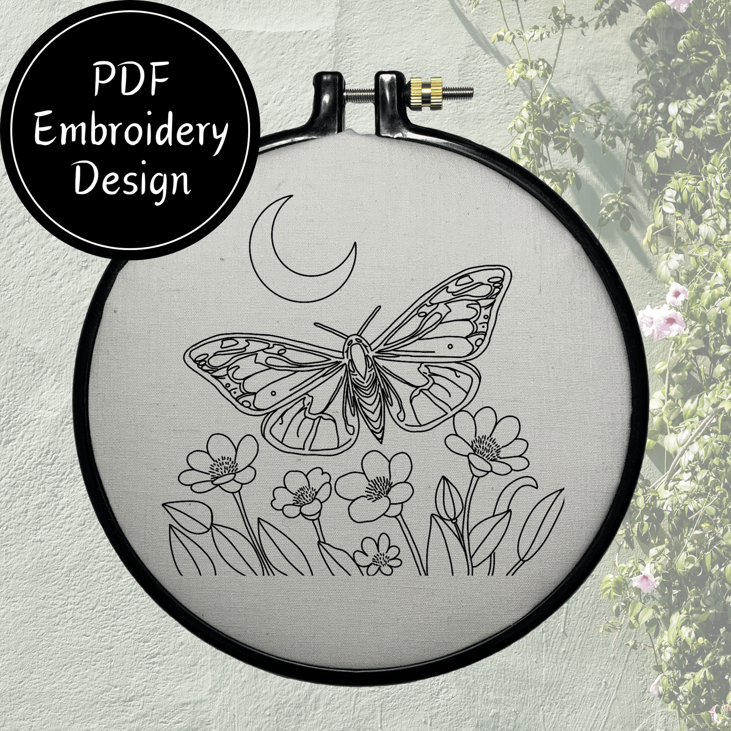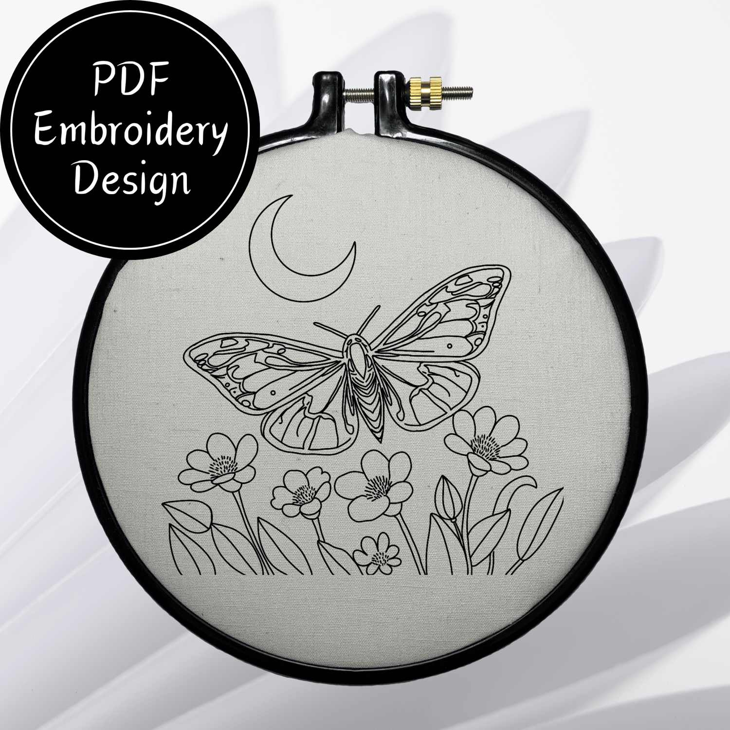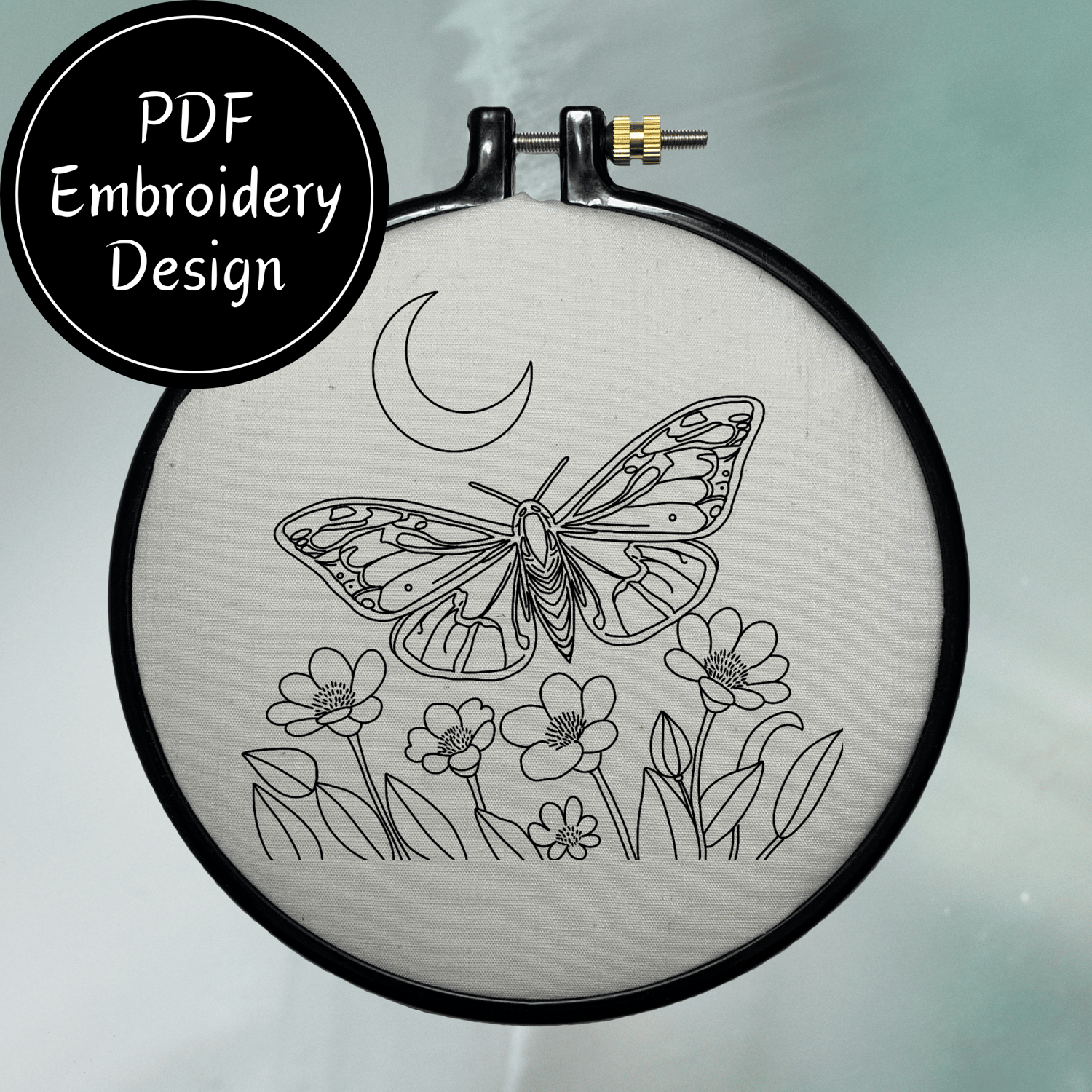 Moth And Moon Hand Embroidery Pattern DIY Embroidery