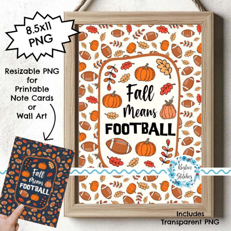 Fall Means Football Printable Cards and Wall Art, PNG Transparent Graphics