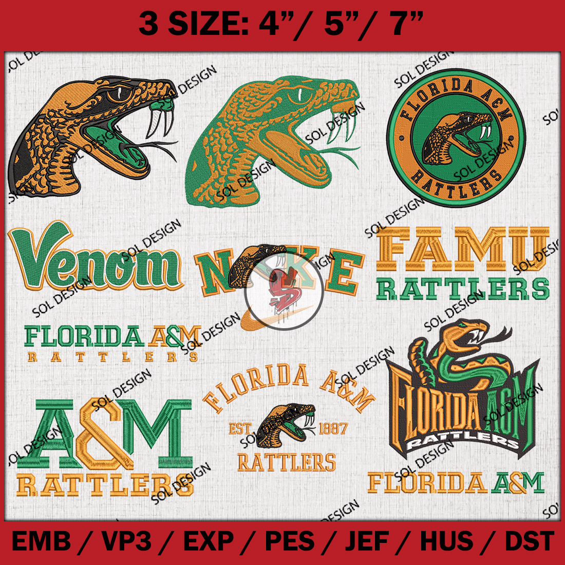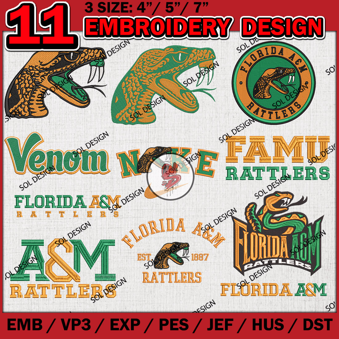 11 Florida A&M Rattlers Bundle Embroidery Files, College Football Embroidery Designs, NCAA Florida A&M Rattlers Machine embroidery Design Bundle, Ncaa Florida A&M Logo bundle, Digital Download