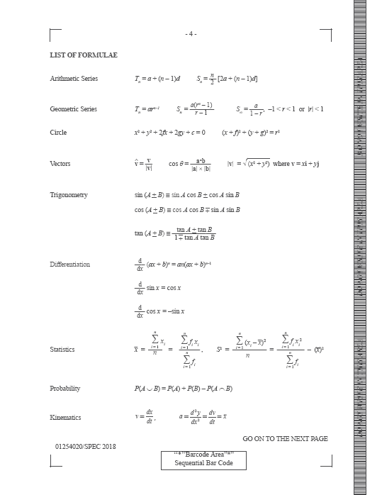 CSEC Additional Mathematics Exam Formula Sheet (2021 Syllabus). Copyright by Caribbean Examinations Council.