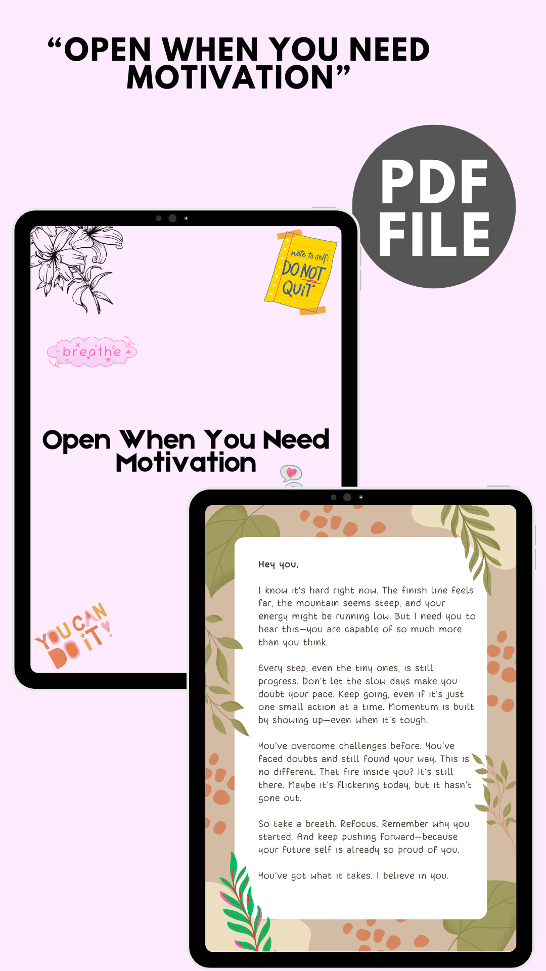 Printable “Open When You Need Motivation” Letter – Inspiring Digital Download for Encouragement & Self-Confidence