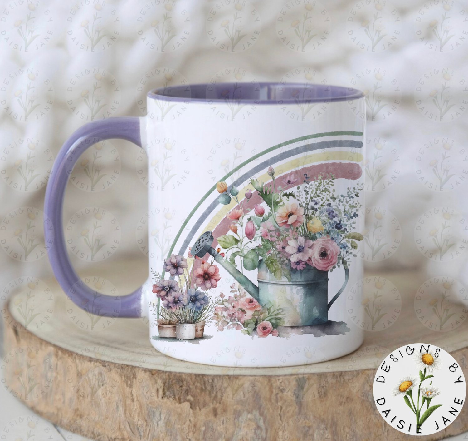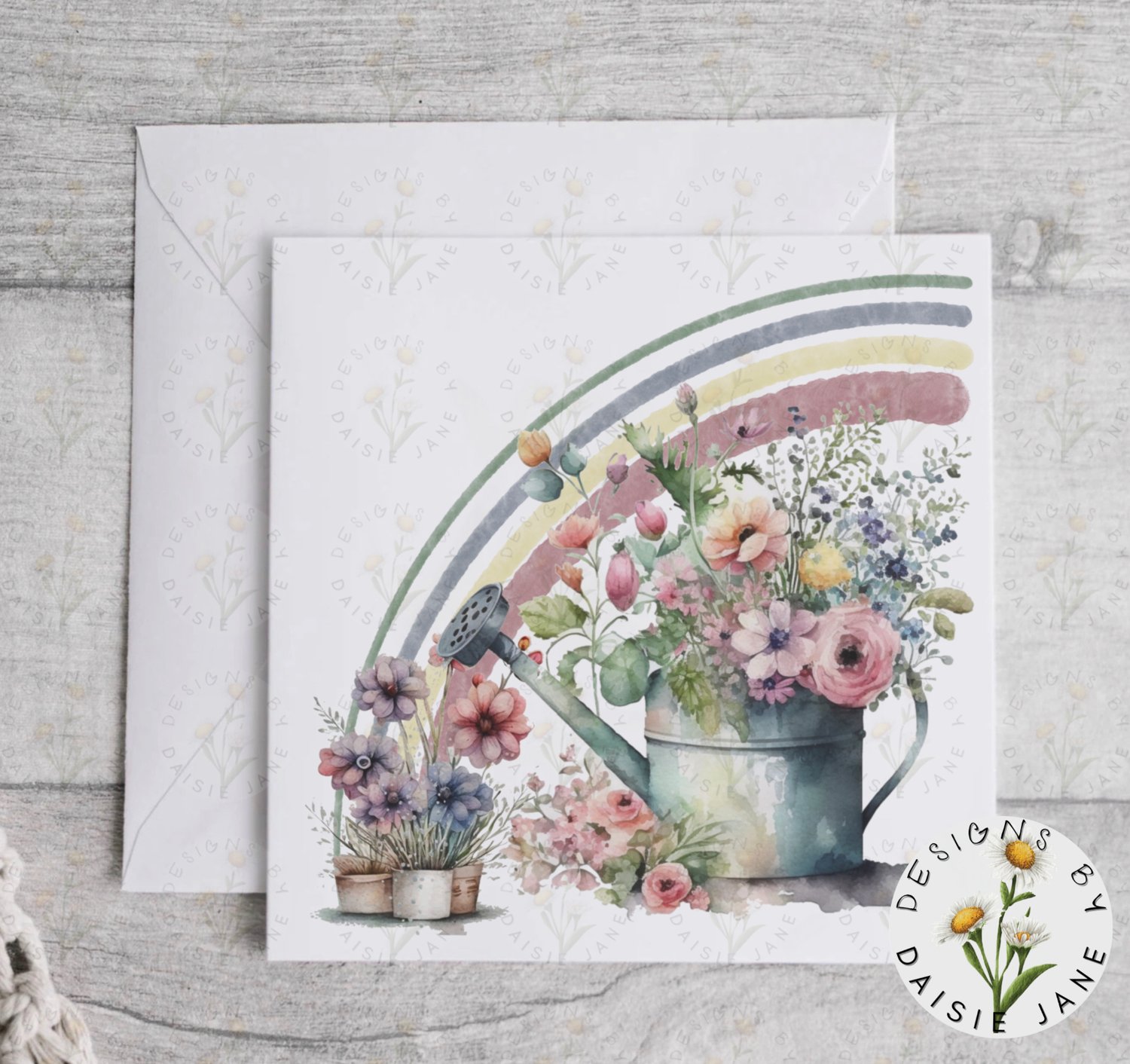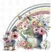 Floral Watering Can & Rainbow. NO TEXT PNG/Clipart