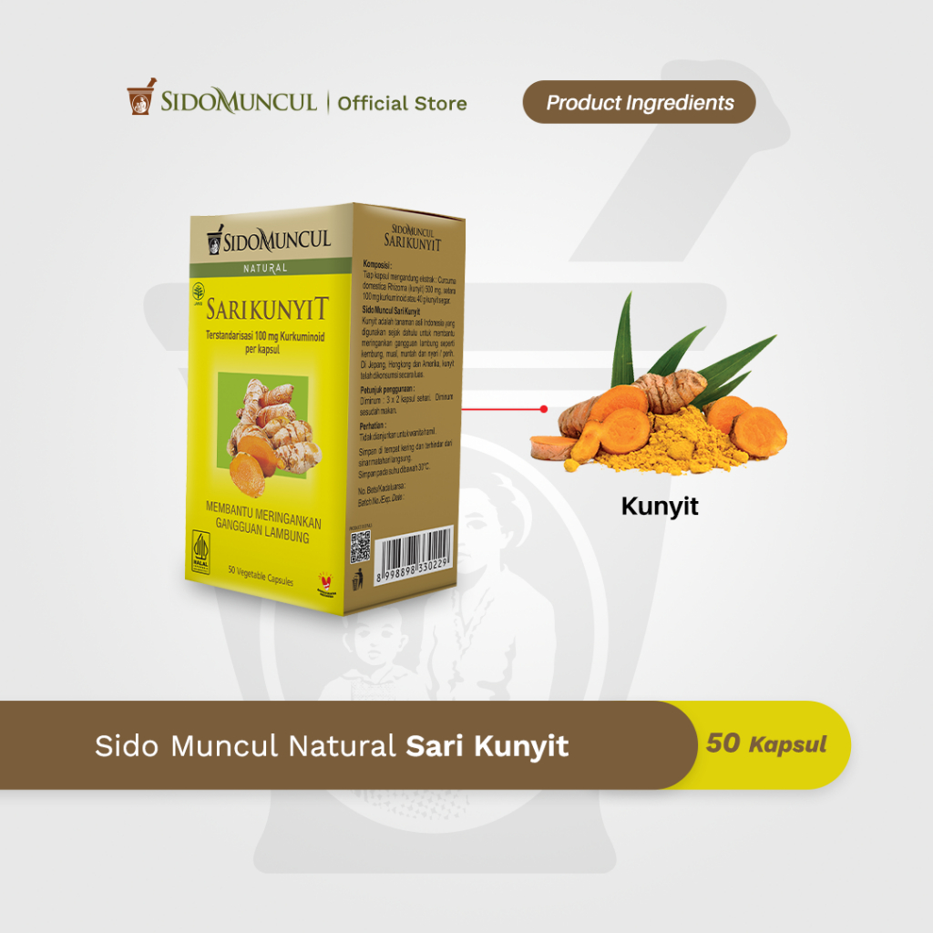 Sido Muncul Herbal Sari Kunyit is a herbal supplement made from turmeric extract that is useful as a supplement to maintain stomach health and help overcome stomach disorders.
