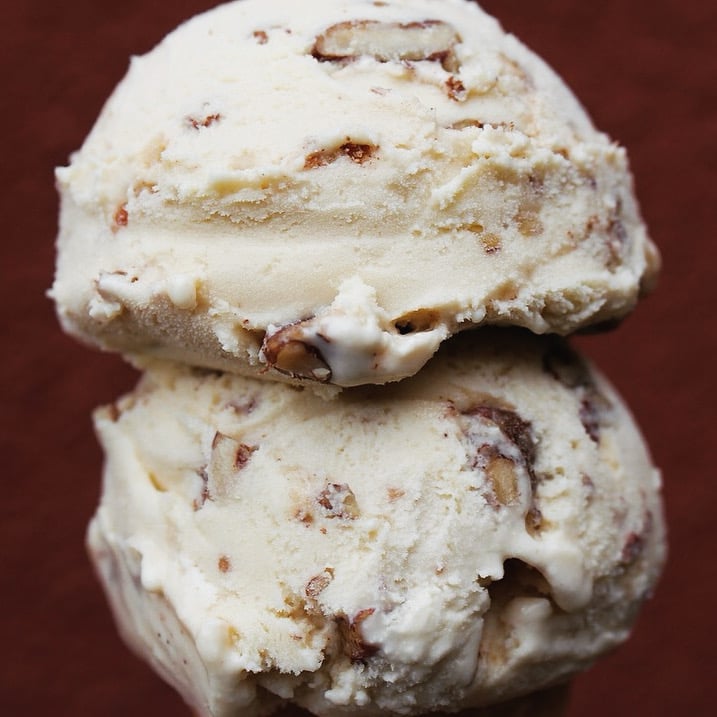 When I think of Butter Pecan ice cream, I am transported back to my childhood and I am at Baskin Robbins waiting in line for my turn to be helped. I never bothered looking at the other 30 flavors because I was (and still am) a creature of habit and would always order the exact same thing: a scoop of Cookies & Cream and a scoop of Butter Pecan on a sugar cone. I have always taken comfort in knowing what to expect. Butter Pecan was the first flavor of homemade ice cream I made back in 2013. My first bite was magical. There is nothing better than toasted pecans cooked down in butter and sugar, swimming in a brown sugar-kissed base. The hint of cinnamon on the candied nuts adds another layer of delicious flavor. I must apologize in advance, as one scoop will most likely not be enough. It truly is that delicious! I'm sorry and you're welcome!