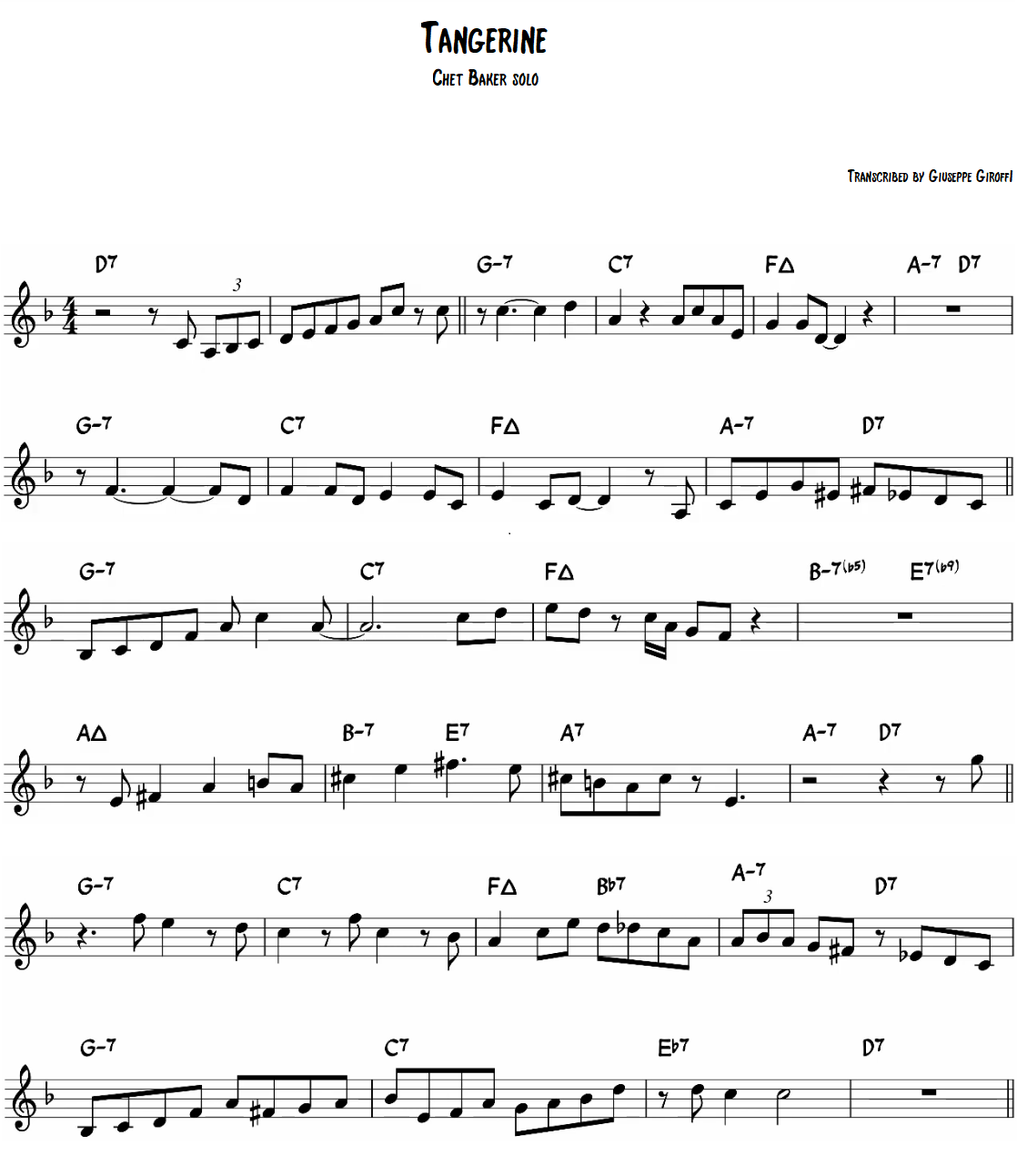 Chet Baker - Tangerine transcription - Solo (Bb) Trumpet