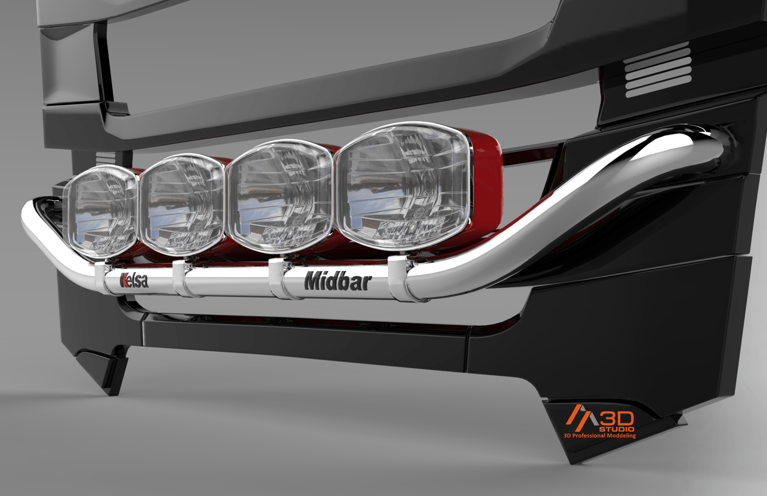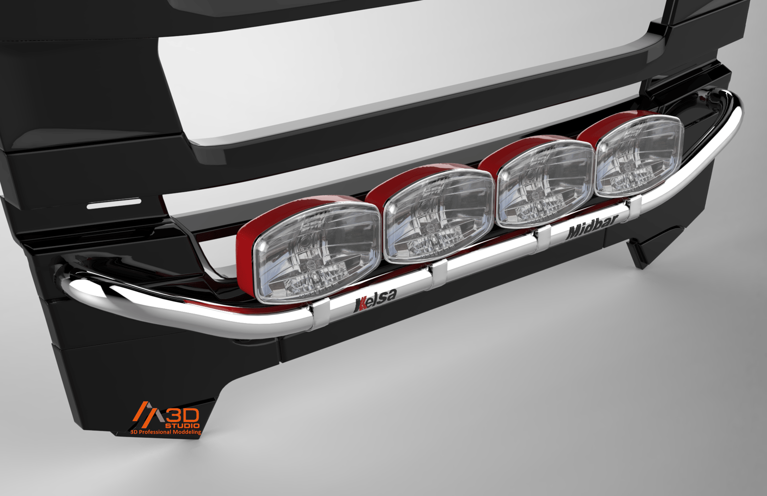 Custom made with parts from scratch,modelled after Scania Next Gen grill..but can easy fit on other truck brands