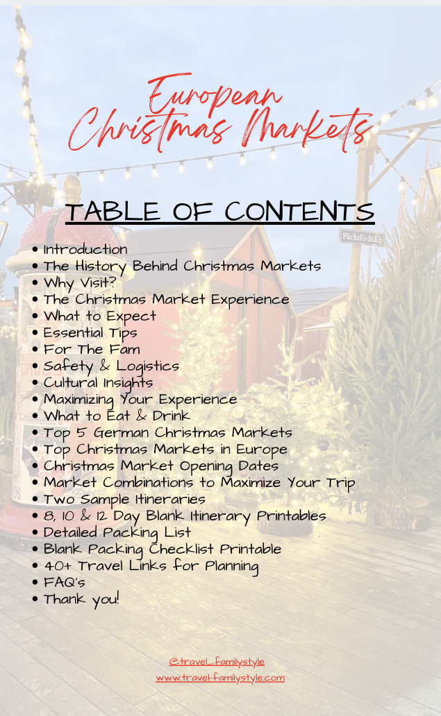 This 25+ page digital guide is designed to be your go-to resource for planning an unforgettable holiday trip. Whether you’re stepping into your very first European market or adding new cities to your festive bucket list, you’ll find everything you need to make the season sparkle.