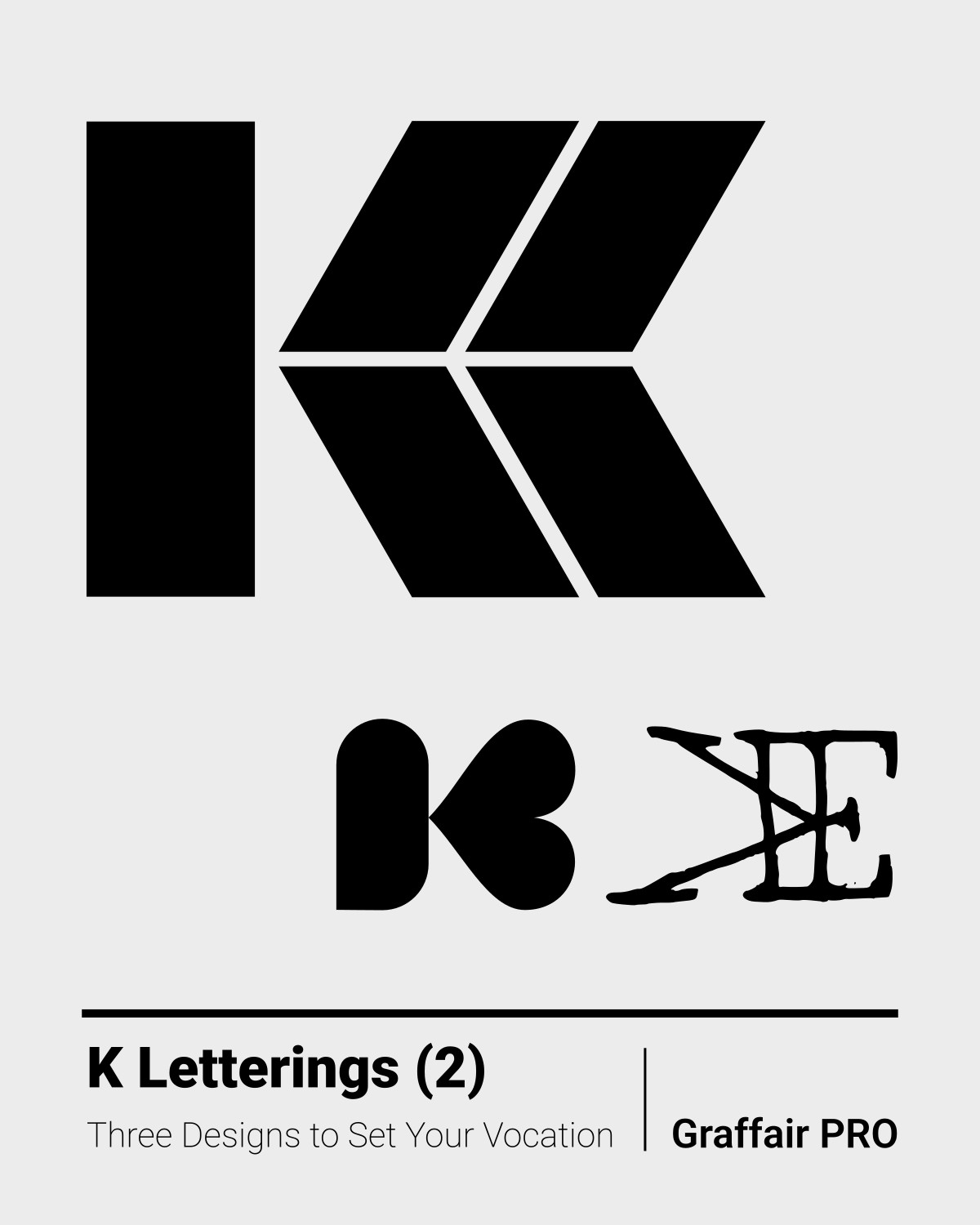 K Letterings (2): The 2nd set of "K" logo/letterings includes three original designs. These letterings are part of the "800 SVG Letterings" bundle, which also contains 800 other exceptional designs.