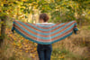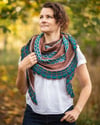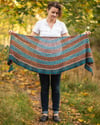 This shawl is designed for contrasting colors. It features an addictive but easy stitch pattern and some easy going stockinette stitch sections. With this design you can showcase the most beautiful contrasting color yarn from your stash. The stockinette stitch sections of the shawl is fun mindless knitting that can be done while watching TV and the brick sections requires a little bit of concentration but knits up fast.