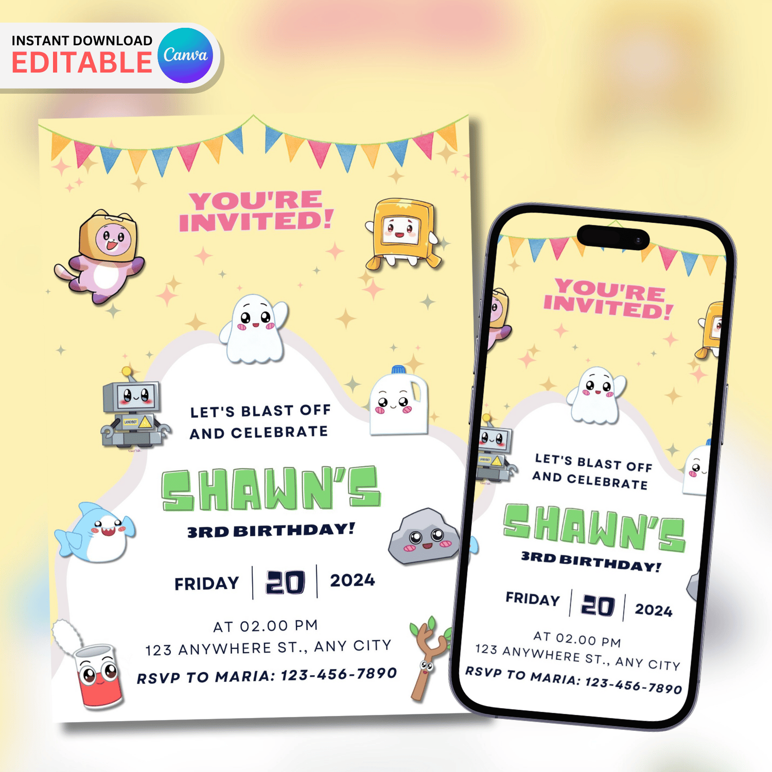 Lankybox Birthday Invitation, lankybox birthday, lankybox invitation, lankybox printable, 5x7inch Editable Canva template