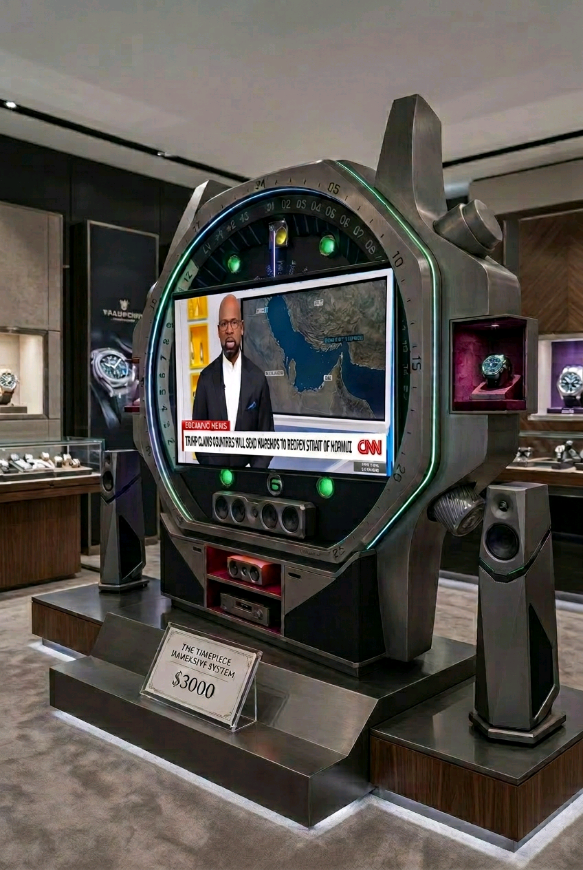 A bold fusion of horology-inspired design and modern entertainment technology, the ChronoVault Immersive Timepiece System is a statement centerpiece crafted for luxury interiors. Designed to resemble an oversized watch case, it integrates a high-definition display, ambient LED lighting, and a premium multi-speaker audio system for a fully immersive viewing experience. The industrial metal finish combined with precision detailing evokes the sophistication of high-end timepieces, while side display compartments add a collector’s showcase appeal. Perfect for upscale living spaces, showrooms, or tech-forward lounges, this unit blends art, innovation, and functionality into one extraordinary installation.