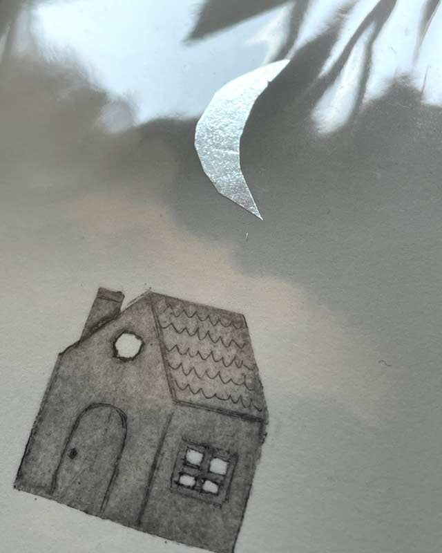 Little House Moon - original intaglio engraving collage