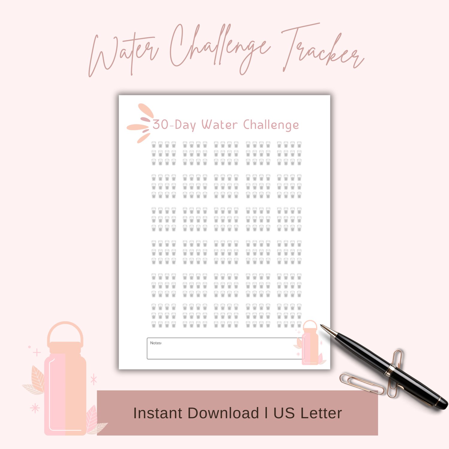 30-Day Water Challenge Tracker ~ $1