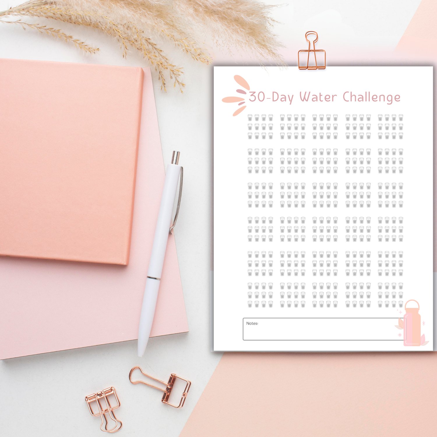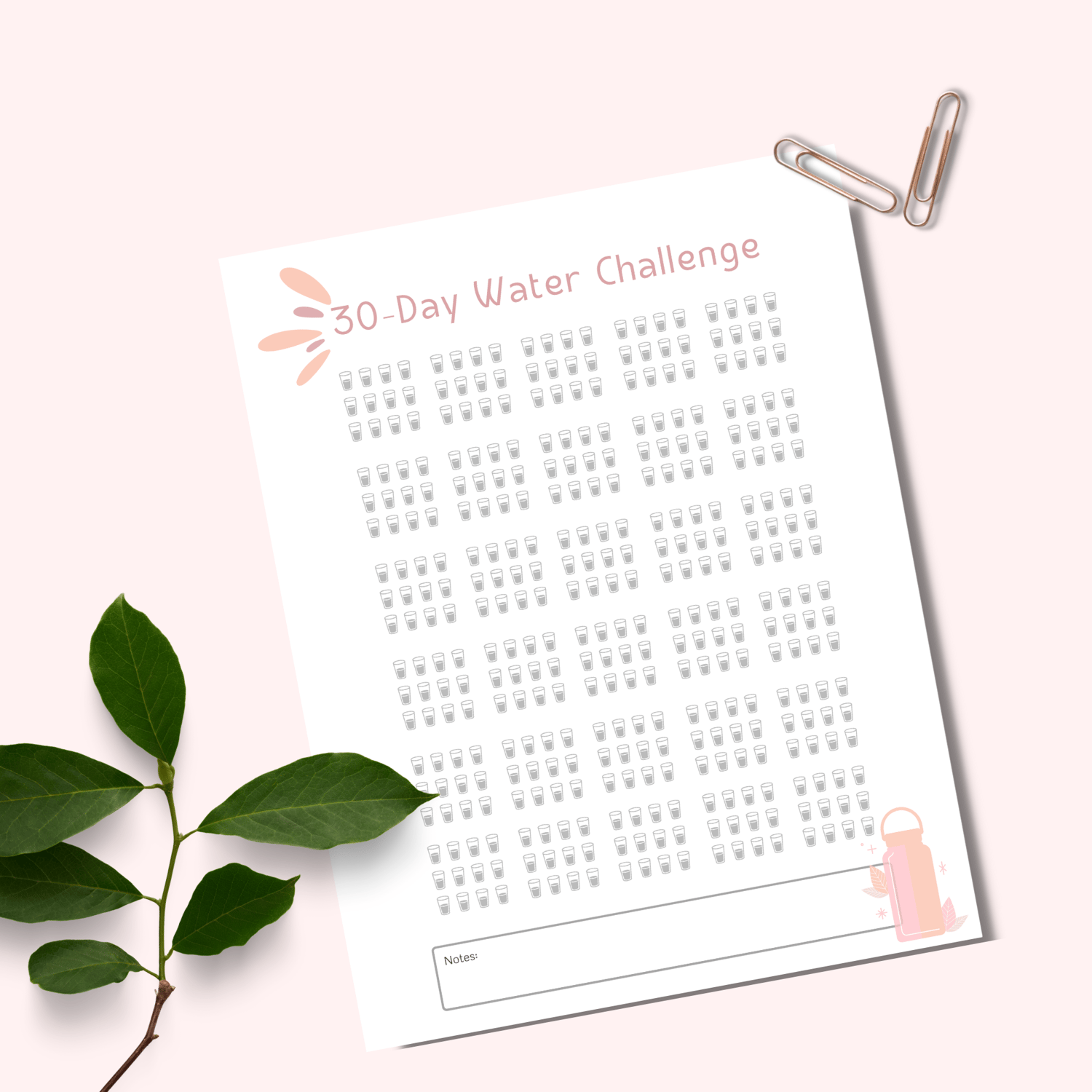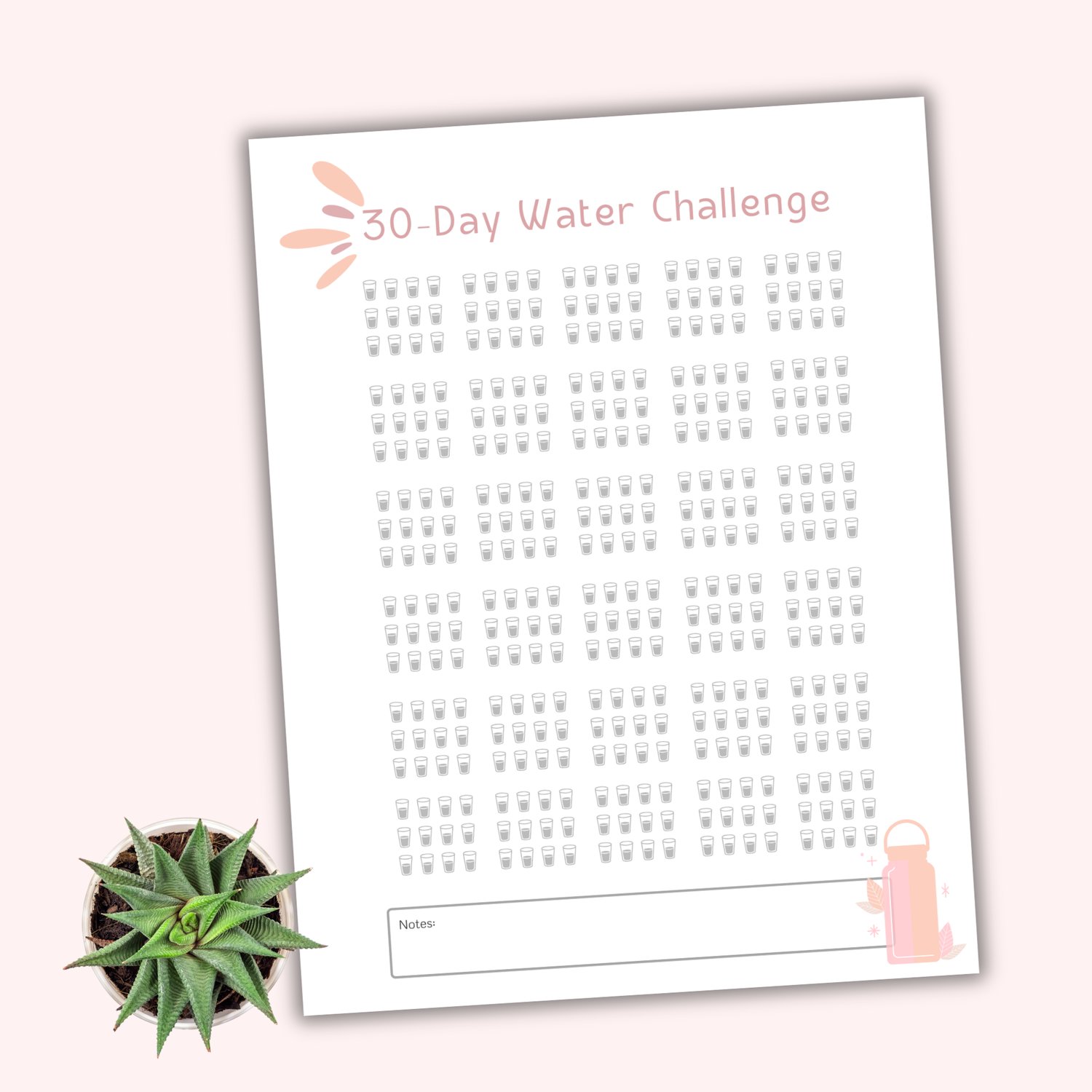 Drink your water, check off your progress, and use the notes section to Celebrate your wins!