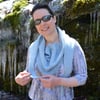 4 skeins DK weight eco yarn, Mirasol Samp’a shown in blue. Skein info: 100% SKAL certified organic