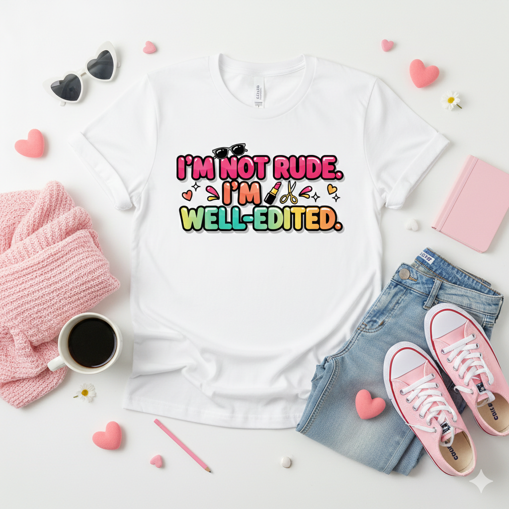 "I'M NOT RUDE, I'M WELL-EDITED": The perfect graphic for those who appreciate sharp wit and fashion.