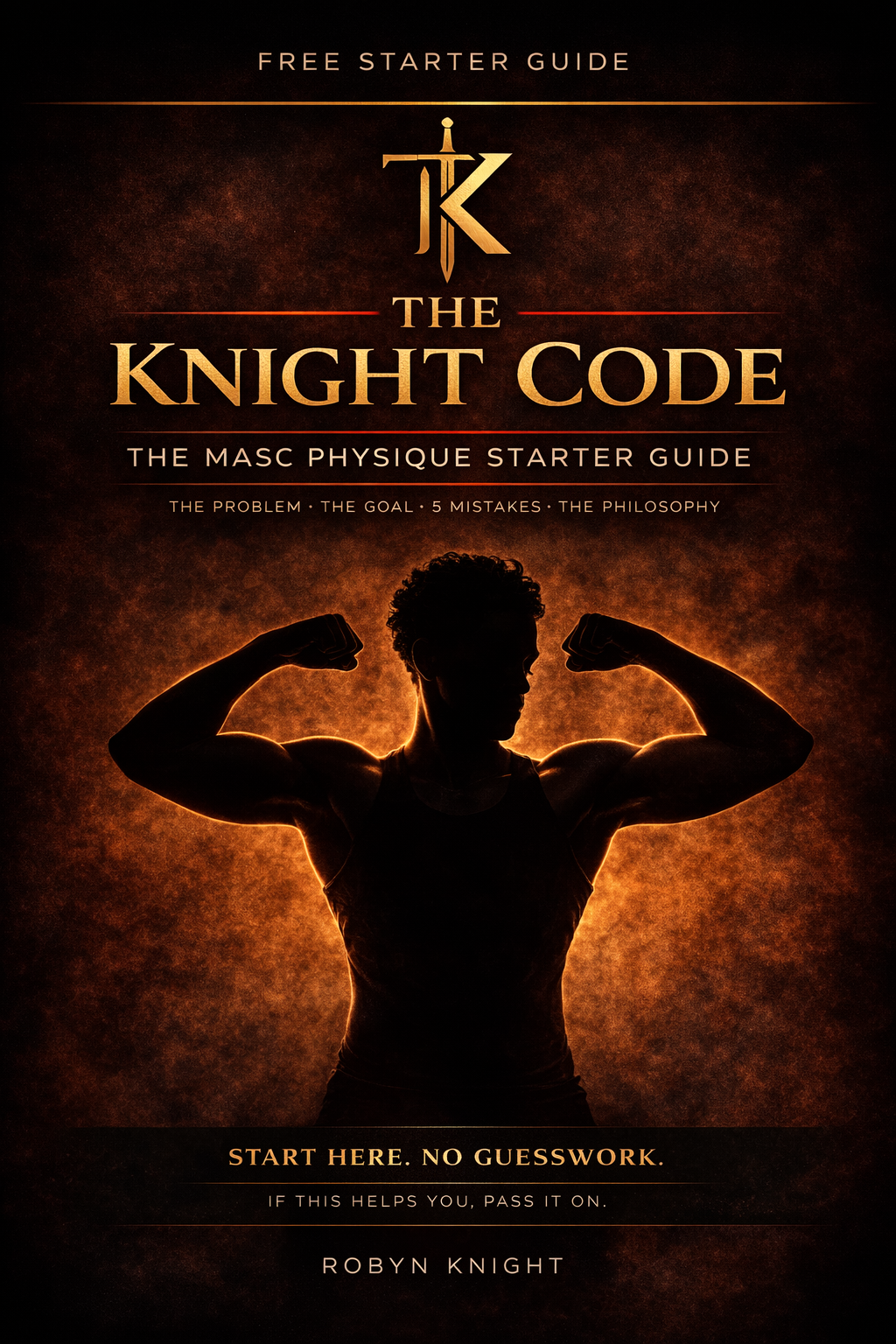 This free starter guide breaks down the foundations of the Knight Code approach: how to train for a more masc physique, what to focus on in the gym, how to eat for fat loss and muscle definition, and the mindset shifts that stop you from starting over every few weeks.