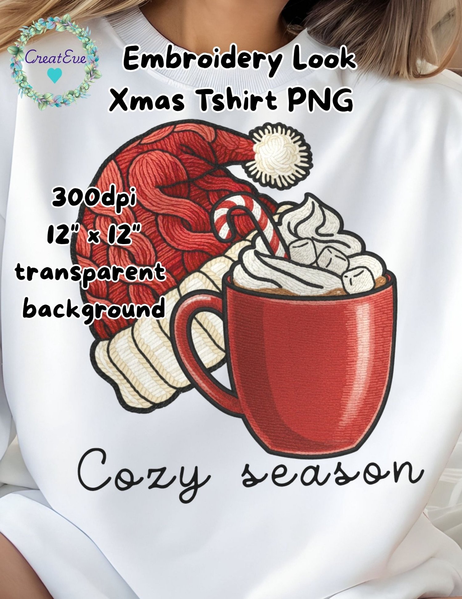 Cozy Season Christmas Hot Cocoa T-shirt PNG, 300dpi, 12" x 12", Transparent Background