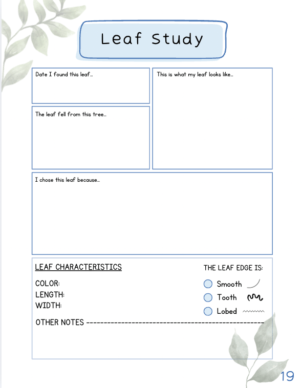 - Leaf and animal study pages for a scientific study