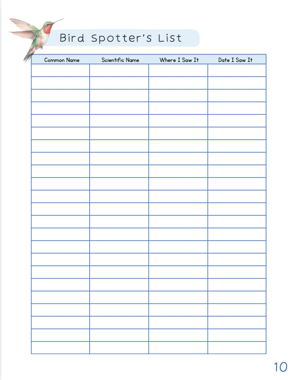 - Dedicated log pages for birds, animals, bugs, trees, and flowers