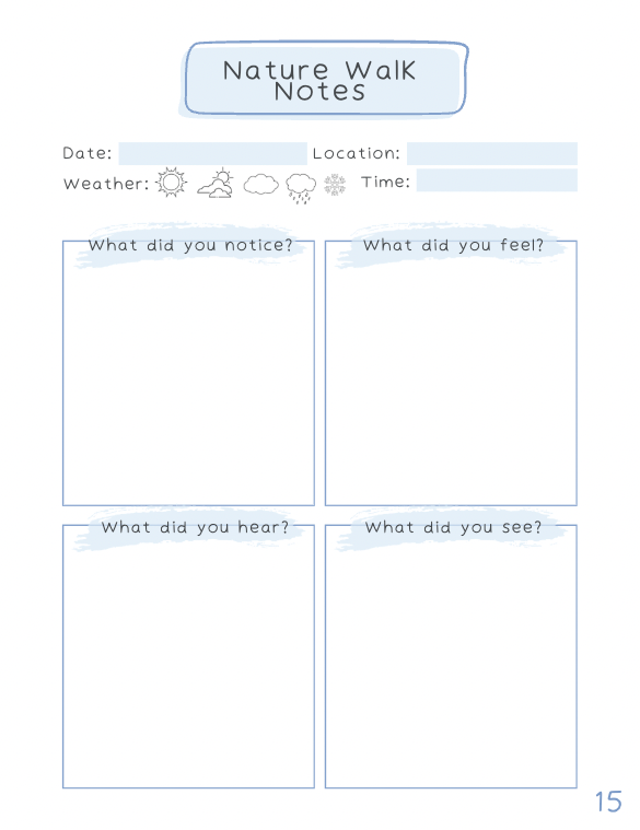 - Nature walk notes section to record the day