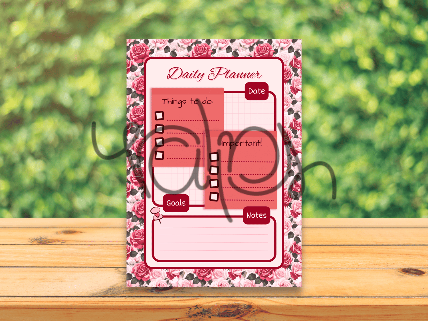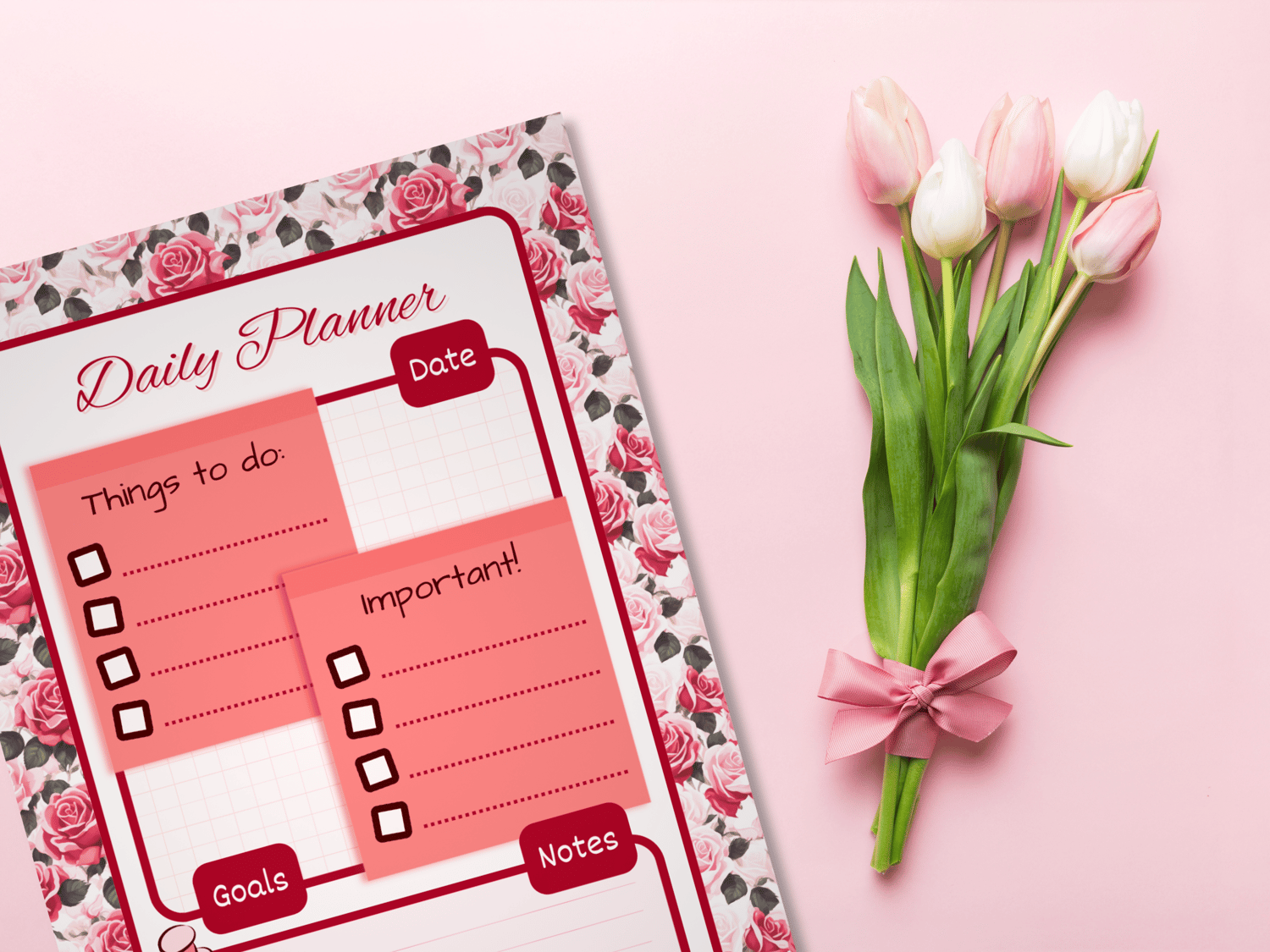 Daily Planner Templates | Daily Planner Roses Background Template | Daily Planner Canva Template