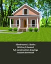 Arielle Farmhouse Home Plan: 3 Bed, 2 Bath, 1610 sq ft (PDF Blueprint)