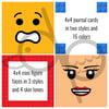 45 - 4x4 sized journal cards in 2 styles an in 16 colors, plus filler cards of three mini-figure faces in 4 skin tones