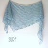 Surf is worked in a delicate lace pattern with a dramatic edge, perfect for showing off your self-striping, gradient, or tonal yarns. The simple, stockinette-based lace creates little waves in the fabric while the bold edging keeps the knitting interesting.