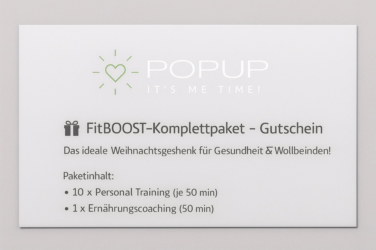 Mit diesem Gutschein erhältst du 10x Personaltraining sowie eine umfassende Ernährungsanalyse inklusive wertvoller, individuell angepasster Tipps und Unterstützung zur Ernährungsoptimierung.