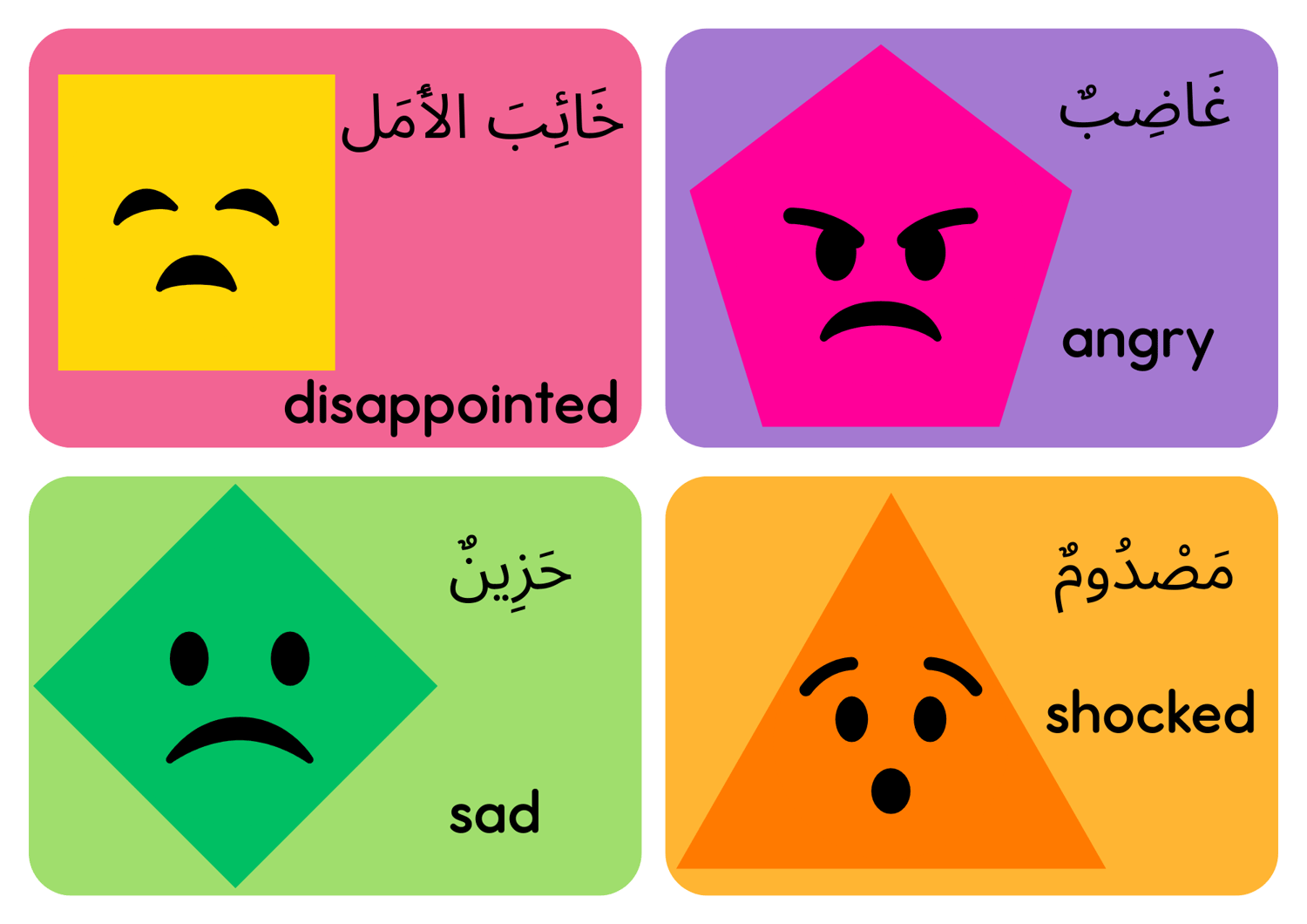 Help your child develop emotional intelligence with our captivating Emotions Awareness Flashcards. Designed specifically for bilingual children, these flashcards feature both Arabic and English to help little ones identify and name a wide range of emotions. Each card showcases colorful illustrations that engage young minds while fostering empathy and self-awareness. Equip your child with the tools to express their feelings and build strong emotional connections with others. Invest in their emotional well-being.