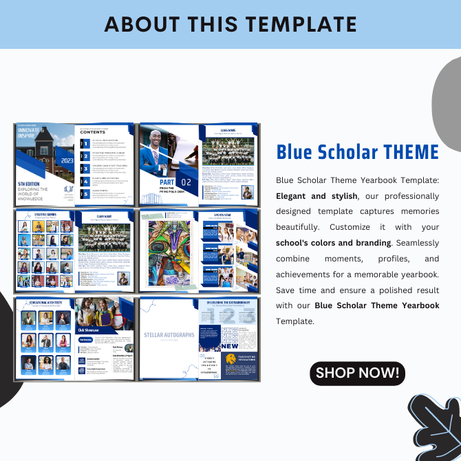 Don't miss out on creating a memorable yearbook experience with our Blue Scholar Yearbook Template. Visit our Payhip store today to grab your copy and embark on a journey of capturing unforgettable memories.
