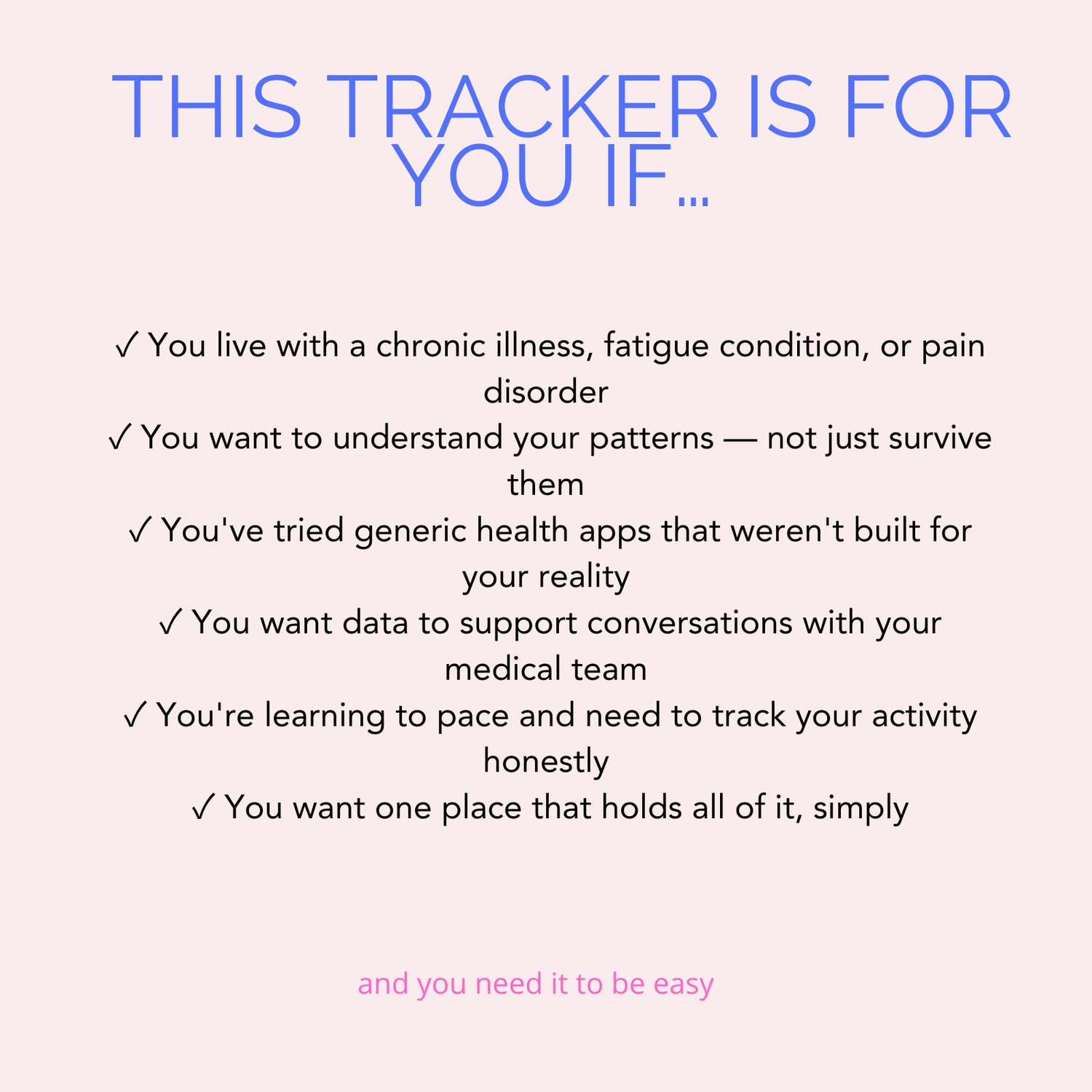 ✓ You have a chronic illness, pain condition, or fatigue disorder and want to understand your patterns