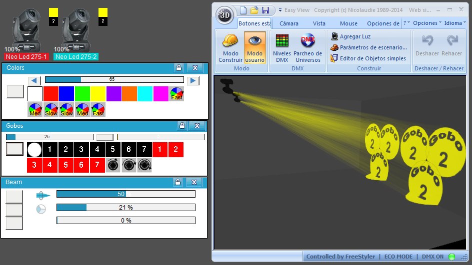 Esta Librería SSL2 está optimizada para trabajar con Magic 3d Easy View. Es decir para ver una representación 3D de las secuencias que estemos realizando con Freestyler, QLC+ o cualquier otro soft que se conecte con Magic 3d.