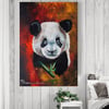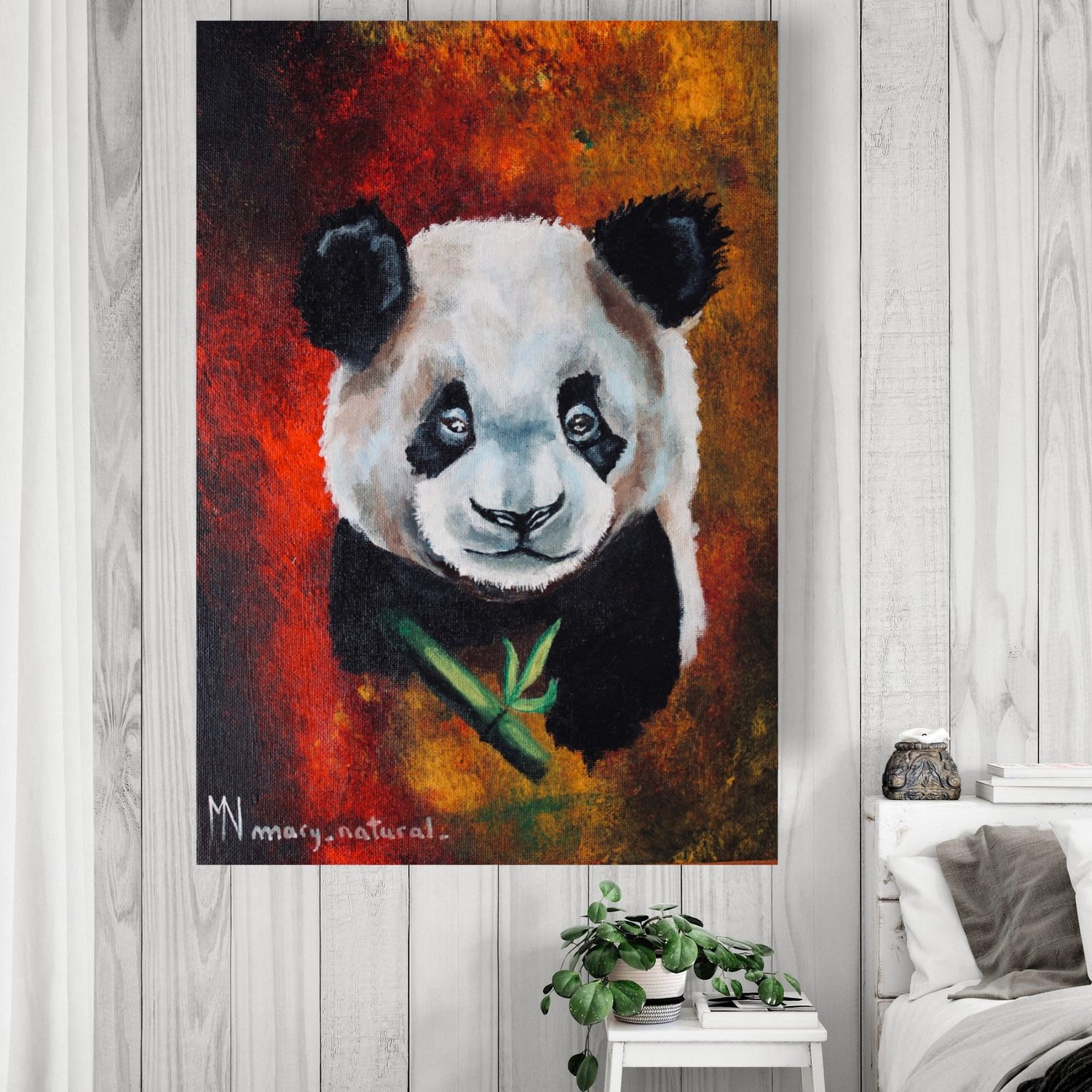 En este lienzo quise ir más allá de la imagen tierna y entrañable con la que solemos asociar al panda. Su mirada transmite calma, pero también una presencia imponente que refleja su naturaleza salvaje y poderosa. Entre trazos y contrastes, la obra busca mostrar al panda no solo como un símbolo de dulzura, sino como un animal majestuoso que habita los bosques con fuerza y carácter propio.