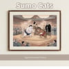 Sumo Cat Wall Art, Japanese Printable Poster, Ukiyo-e Style Cat Print, Funny Japan Decor, Digital Download