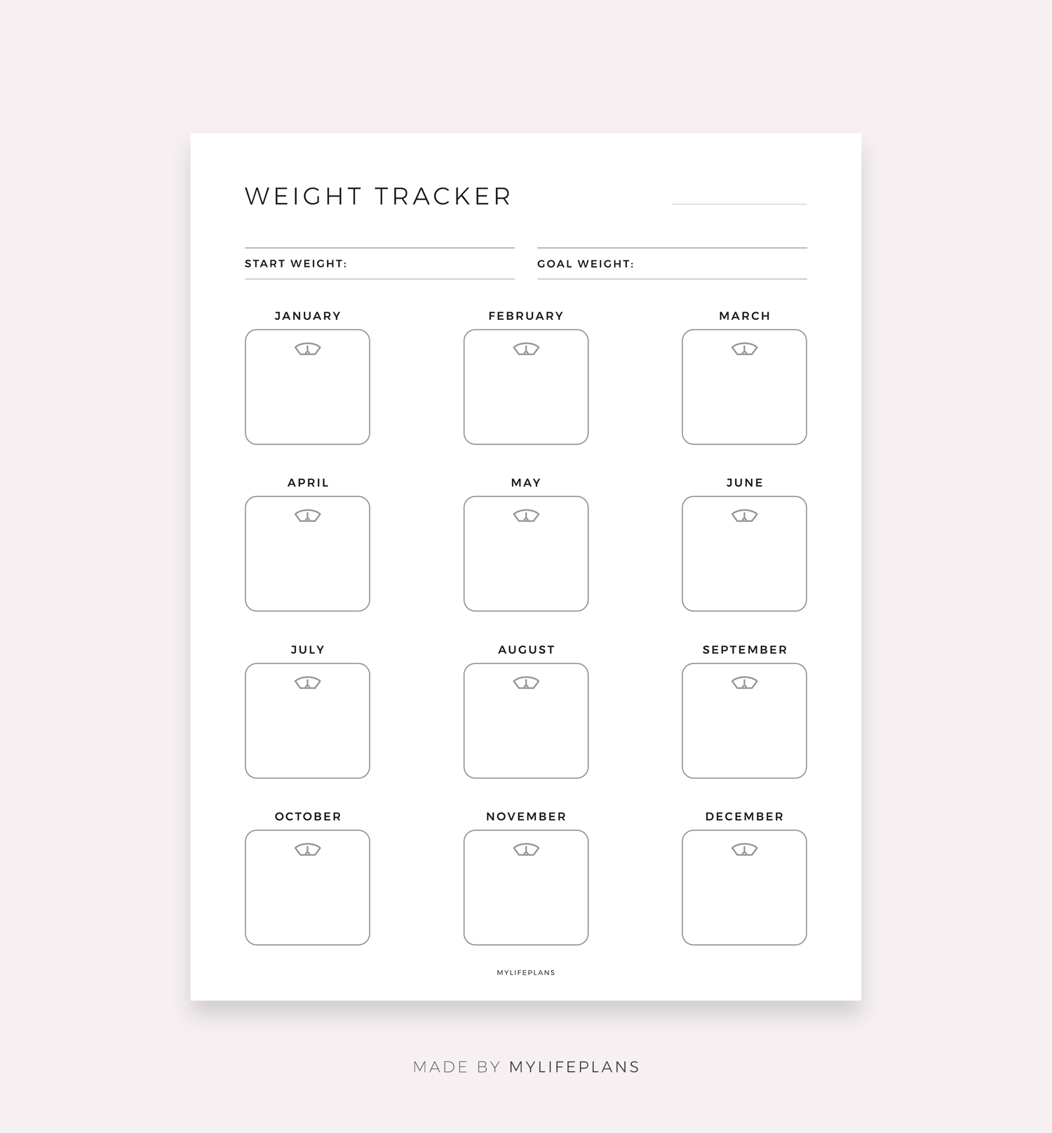 Yearly Weight Tracker, Digital Planner for Goodnotes, Notability, Ipad