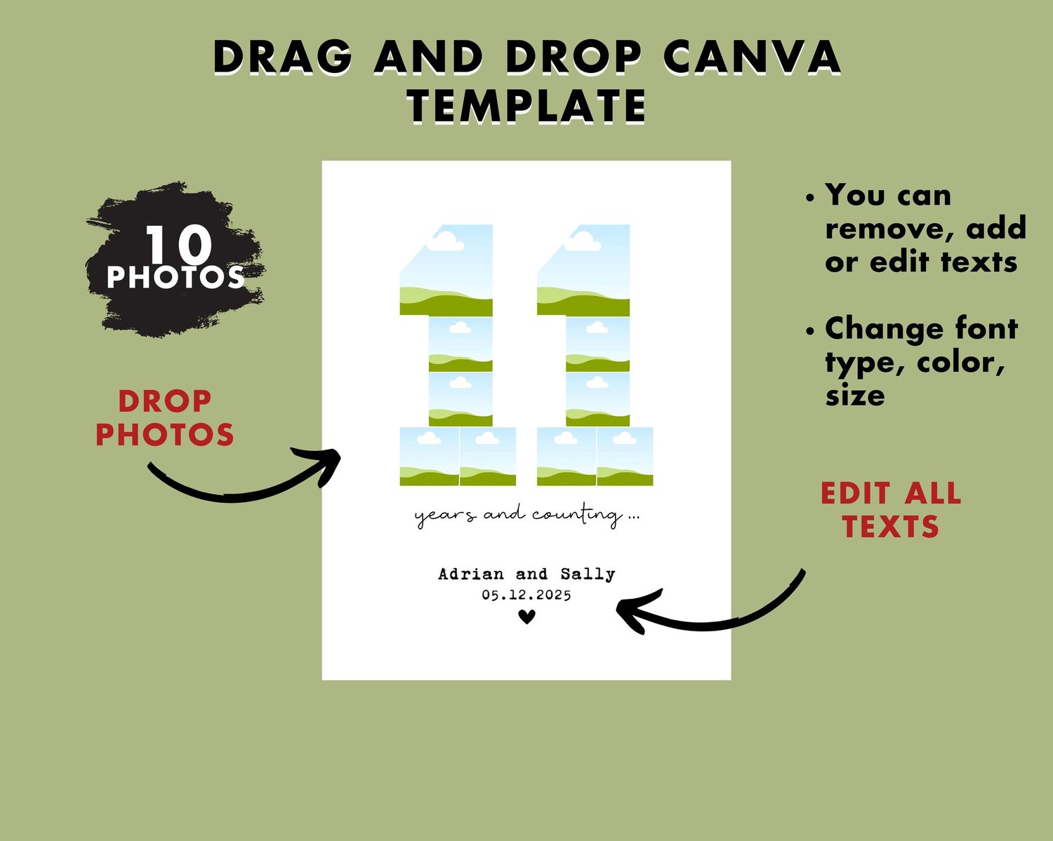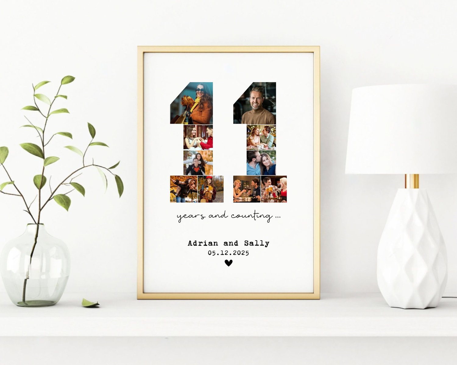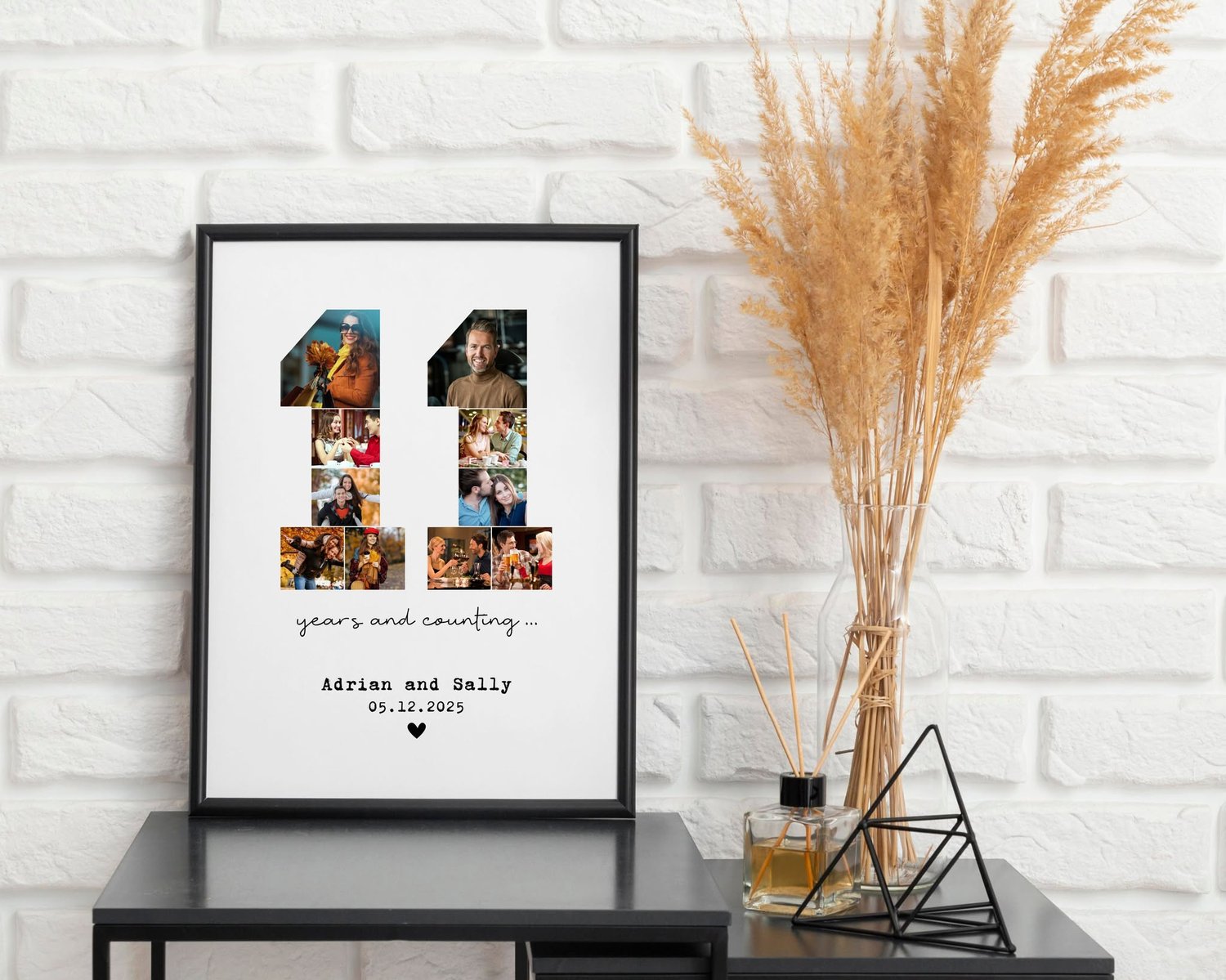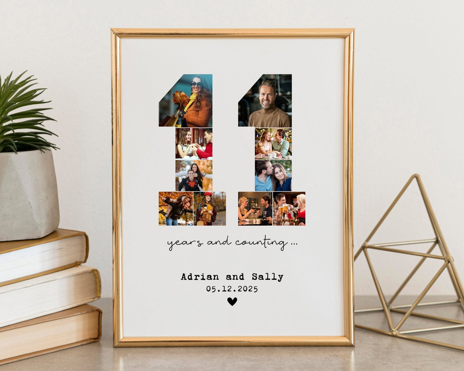 DIGITAL 11th anniversary Photo collage Template, 11 years gift for boyfriend, Present for Her, 11th Birthday, 11 years idea