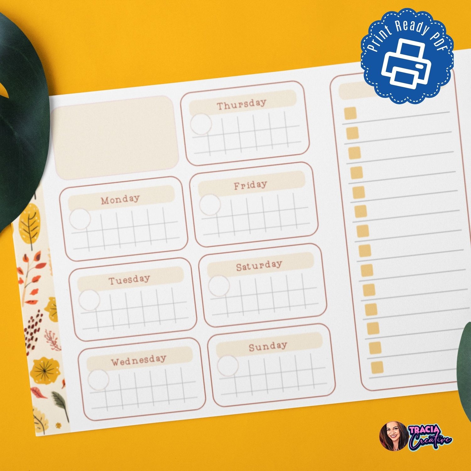 - Plan Your Week: Fill in the daily sections with your schedule and tasks.