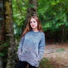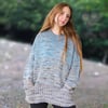 The sweater can be worked in one color or, as my sample, in a fade between two similar colors (this last option is very handy if you don’t have a sweater quantity of a single color).