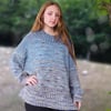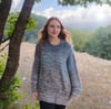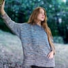 The sweater is worked seamlessly from the top down with drop sleeves, starting from the shoulders and growing down to form the rest of the body.