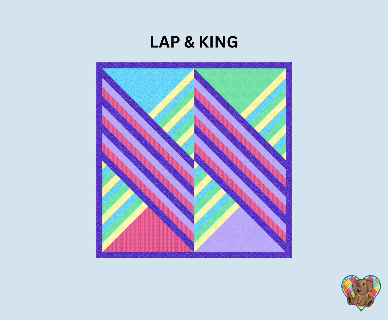 *Note: This pattern includes instructions for a baby (42.5" X 42.5"), lap (64.5" X 64.5"), twin (75.75" X 90"), queen (90" X 107"), and king (110" X 110") size quilt.* Blocks are traditional pieced blocks.